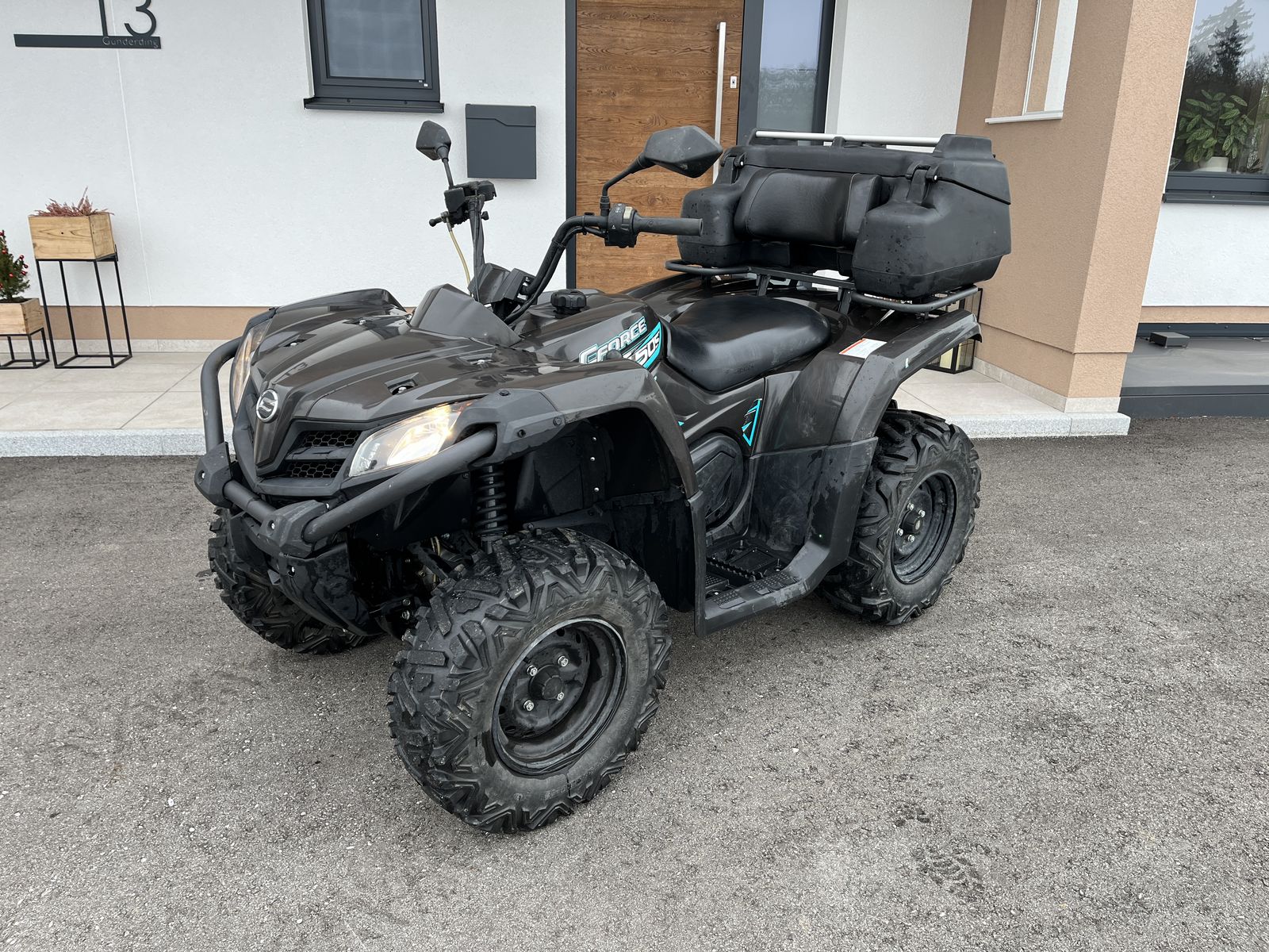 Das Quad eignet sich perfekt für Arbeiten im Gelände, fürs Jagen oder Freizeitfahrten. Der Heckkoffer bietet zusätzlichen Stauraum für Werkzeug oder Ausrüstung.