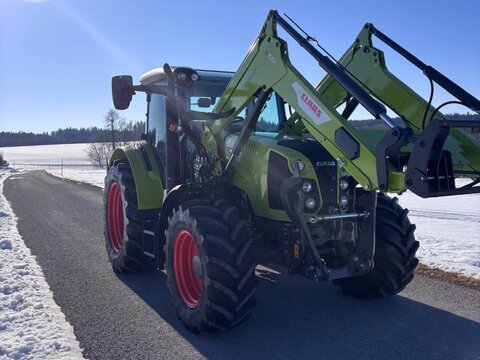 - Standardtraktor mit 4-Zylinder FPT Motor mit max. 90 PS, max. 405 Nm (ECE R 120) und 4,5 l Hubraum - Kraftstofftank max. 140 l, Harnstofftank max. 17 l - Vierfach-Lastschaltgetriebe QUADRISHIFT - Endgeschwindigkeit max. 40 km/h - Radstand 2,49 m - Hubkraft max. 4.500 kg Antrieb & Motor - Vorderachse, Standard - QUADRISHIFT Getriebe (16/16-Gang, 4-fach Lastschaltgetriebe) - Getriebeübersetzung 40 km/h - 2 Motordrehzahlspeicher mit Startgang und Schaltautomatik - SMART STOP - Hinterachse, Standard - Batteriehauptschalter, elektronisch - Diesel weiß - Lichtmaschine 200 A/h Hydraulik - Hydrauliksystem Load-Sensing (110 l/min) - 3 Steuergeräte, mechanisch - Mittelachssteuergeräte mit Belegung FL und FKH und 1x dw/hinten Frontanbau - CLAAS Frontkraftheber 2,8 t inkl. externer Bedienung (Für Mittelachssteuergerät mit ELECTROPILOT) - Externe Bedienung für den Frontkraftheber (CIS) Heckanbau - Heckkraftheber, elektrohydraulisch, 4,5 t - Unterlenker Kat. 3 mit Fanghaken - 2 Unterlenker-Seitenstabilisatoren, mechanisch - Oberlenker Kat. 3/2 mit Fanghaken - Kugelsatz Kat. 3/2 - Anhängebock Inkl. Einschub für Zugpendel - Ohne Zugpendel - Zugmaul, automatisch mit 38 mm Bolzendurchmesser - Druckluftbremsanlage (2-Kreis) Inkl. Lufttrockner - Zapfwelle 540/540 ECO + 1000 U/min - Zapfwellenstummel 6-teilig, 1"3/8 - Zapfwellensteuerung, hinten - Mit Zapfwellenautomatik, hinten Kabine & Komfort - 6-Pfosten Kabine Panoramic - Linie CIS - Multifunktionsgriff mit ELECTROPILOT - CIS, farbliches Bedienterminal - Fahrersitz, Stoff, luftgefedert Grammer MSG95A/731 - Beifahrersitz mit Sicherheitsgurt - PANORAMIC Dach - Klimaanlage, inkl. Vorbereitung Kat. 3 - MP3-Radio mit Bluetooth, USB und Freisprecheinrichtung - Kühlfach für 1,5 l Flasche (unter dem Einweisersitz) - Zigarettenanzünder und Aschenbecher - Sonnenblende, Front - Arbeitsscheinwerfer (4 vorne; 4 hinten) - Hauptscheinwerfer + 2 Arbeitsscheinwerfer an Motorhaube - 2 Fahrersatzscheinwerfer am Dach oben - Heckscheibenwischer - Mechanischer Spiegel, inkl. Weitwinkelspiegel, teleskopierbar - Terminalhalterung (Anbauschiene) - Zusätzliche Schnittstellensteckdosen Fahrerassistenzsysteme - Lenkschnittstelle, Standard Bereifung - Hinterachsbereifung 540/65 R34 Mitas AC 65 / Festfelge 8-Loch-Felge mit 203 mm Lochkreisdurchmesser - Vorderachsbereifung 440/65 R24 Mitas AC 65 / Festfelge 8-Loch-Felge mit 275 mm Lochkreisdurchmesser Kotflügel - Vorderradkotflügel, schwenkbar, 470 mm - Kotflügelgrundk., grün/schmale Vers. inkl.Verbreiterung (2,26 m) Zusatzausstattung - Werkzeugkasten - Rundumwarnleuchte LED, links - Unterlegkeil - Erste-Hilfe-Kasten - Typenschild, EU - Aufkleber, Standard Frontlader Claas FL100C - Traktor mit MACH System NS Kupplungen - Mechanische Parallelführung - FITLOCK - vereinfachtes An- und Abkuppeln - 3. Hydraulische Funktion, inkl. 2 ISO Steckkuppler - MACH-Schnellkupplungssystem NS - Mechanische Verriegelung - Werkzeugaufnahme EURO