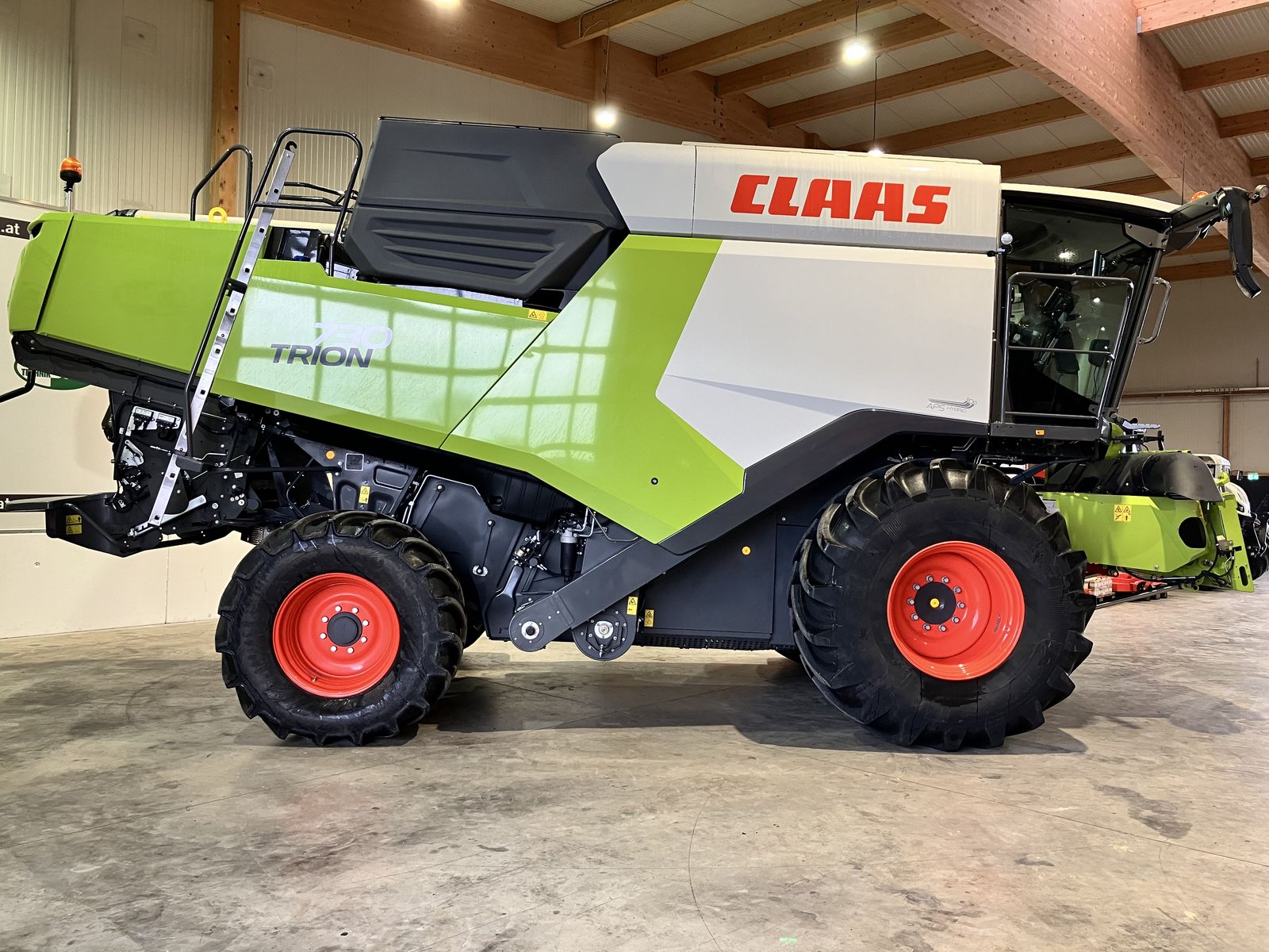 CLAAS Trion 730 + Baujahr 2023, ca. 330 Motor-/ 220 Arbeitsstunden + Cummins L9 Motor- 300kw/ 408 PS (Stage V) + Vorsatzgeräteantrieb M, konstant + V- Kanal- Auto Contour, Kette, Umlenkwalze offen + Anhängekupplung automatisch + Staubabsaugung + APS Dreschsystem Getreide/ Mais (10/18/18), DS + Dreschtrommelantrieb 400-1050 U/min + ROTO Plus Standard 4/6 + Rotorleitblechverstellung über Cebis + Jet Stream Reinigung mit 3D + CEMOS DIALOG über Cebis + CEMOS AUTOMATIC- AUTO SLOPE + CEMOS AUTOMATIC- CRUISE PILOT + CEMOS AUTOMATIC- 4D Reinigung + Korntank 11000 Liter + Korntankauslaufrohr XL + Korntankentleerung 110 l/s + Auslauftülle schwenkbar + Special Cut Strohhäcksler PREMIUM LINE + Streublechverstellung hydraulisch + Wurfrichtungsanpassung automatisch + Spreuverteiler + Strohhäckslerantrieb Comfort + Triebachse L1- Schaltung elektrohydraulisch + Triebachsbereifung 800/70R32 175A8, 10 Loch + Lenkachse einstellbar + Lenkachsbereifung 600/65R28, 8 Loch, Mitas + Fahrgeschwindigkeit 25 km/h + Kraftstofftank 1000 Liter + Klimaautomatik mit Heizung + Radio + Sonnenrollos für Seitenscheiben + Fußrasten an der Lenksäule, rechts/ links + Armlehne Leder und Lederlenkrad + Kamera Heck, Anzeige am Terminal + Kamera Korntankauslaufrohr, Profi CAM Anzeige + GPS Pilot Ready + CEMIS 1200 Terminal + Quantimeter Ertragsmessung + Claas Remote Service inkl. Fünfjahreslizenz + Komfortsitz- Stoff, luftgefedert + Arbeitsbeleuchtung LED- Plus + Korntankvorbereitung GPS Pilot + SAT 900 GNSS- Empfänger + Freischaltung GPS- Pilot- SAT 900 GNSS Empfänger + Staubox inkl. Einweisersitz + C-Motion Multifunktionsgriff + Dynamische Lenkung + Rückspiegel elektrisch einstellbar und beheizbar + Kettenschmierung für Korntankentleerung, automatisch + Komfortschmierung + Claas Vario Schneidwerk V 680, Baujahr 2021 + Claas Transportwagen einachsig, Baujahr 2021 + Maschine in neuwertigem Zustand