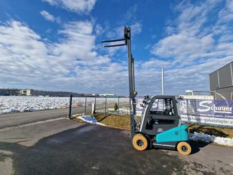 Bauart: Frontstapler / Elektro 3 Rad-Stapler, Tragkraft: 2000kg, Hubhöhe: 3275mm, Bauhöhe: 2105mm, Freihub: 1550mm, Gabellänge: 1150mm, Batterie: PzS Bj. 2025 48V 750Ah , Anbaugeräte: Seitenschieber, Sonderausstattung: 3. Ventil, CE Zertifikat, 3-Rad, Sitz,
