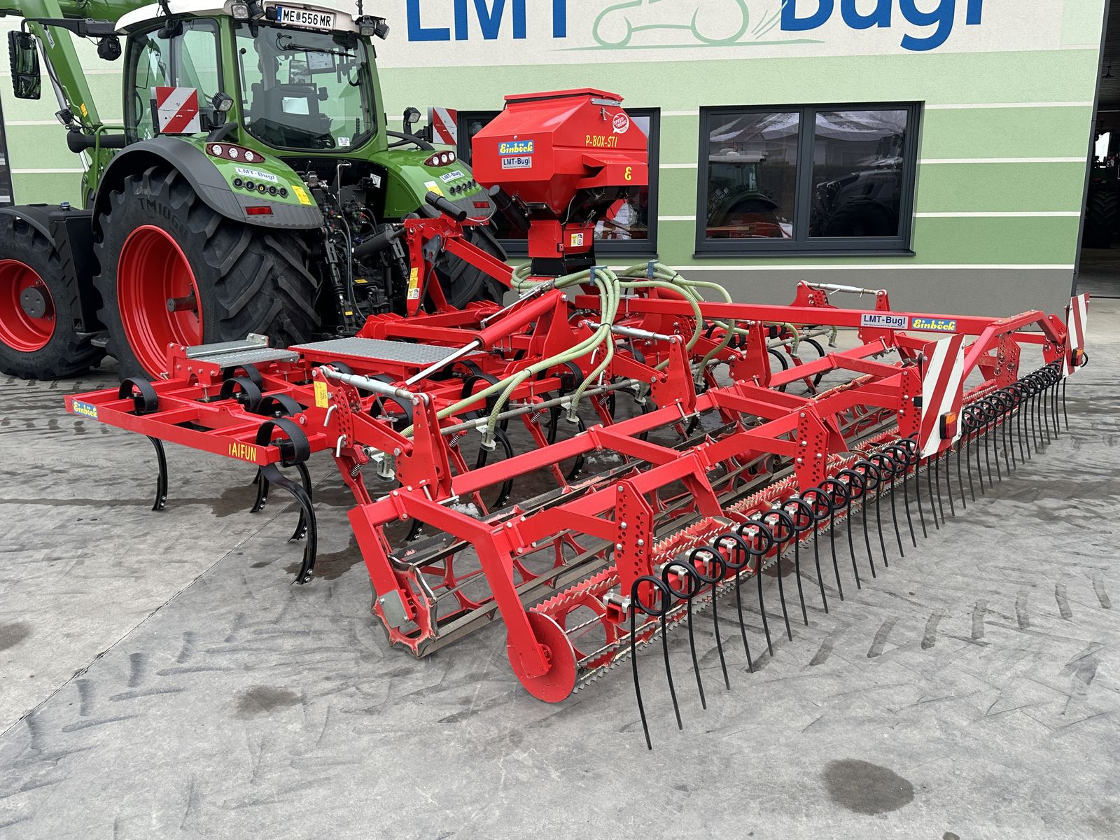 Einböck Taifun 500 FZ * Arbeitsbreite 5m 4-balkig mit 15cm Strichabstand * Herkuleszinken mit Gänsefußschar 200mm * Flachstab-u.Zackenstabwalze zur Tiefenführung * Nachlaufstriegel 2-reihig * Beleuchtungsanlage LED Einböck P-Box-STI 600 * Pneumatisches Sägerät mit Rührwelle und eigenen Säradabschnitt pro Schlauchabgang ( 8 Stück ) * Elektrisches Gebläse * Abdrehblech und Abdrehwanne * Tankvolumen 300 Liter * SPEED TRONIC-Terminal * 2Stk. Säwalzen * 8Stk. Verteilungsprallbleche * elektronischer Hektarzähler Auch als Vorführ-oder Mietmaschine verfügbar