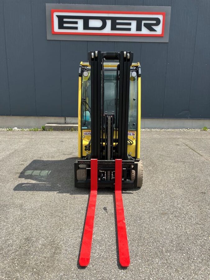 Bauart: Frontstapler / Elektro 4 Rad-Stapler, Tragkraft: 2000kg, Hubhöhe: 4900mm, Bauhöhe: 2130mm, Freihub: 1555mm, Gabellänge: 1500mm, Batterie: 48V 625Ah , Bereifung vorne: Non Marking , Bereifung hinten: Non Marking , Beschreibung: Kabine, Heizung, Seitenschieber integriert, 4 Funktionen, TouchPoint Minihebel, voll gefederter Vinylsitz, Beleuchtung mit Arbeitsscheinwerfer, Rückfahrleuchte, Blinker, Zusatzgleichspannungswandler, Batterie
