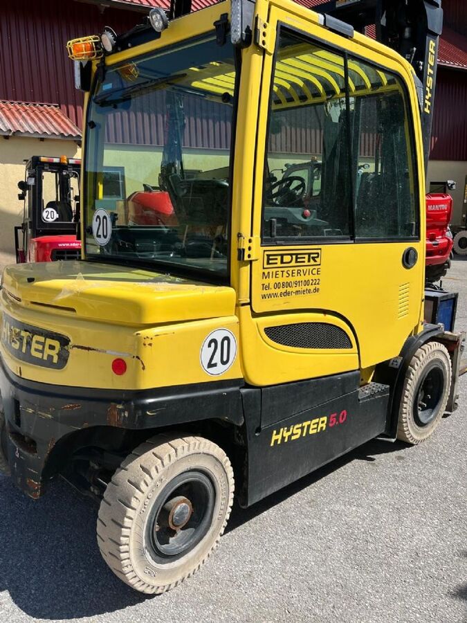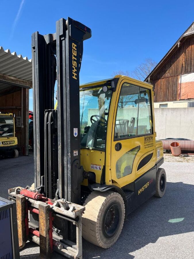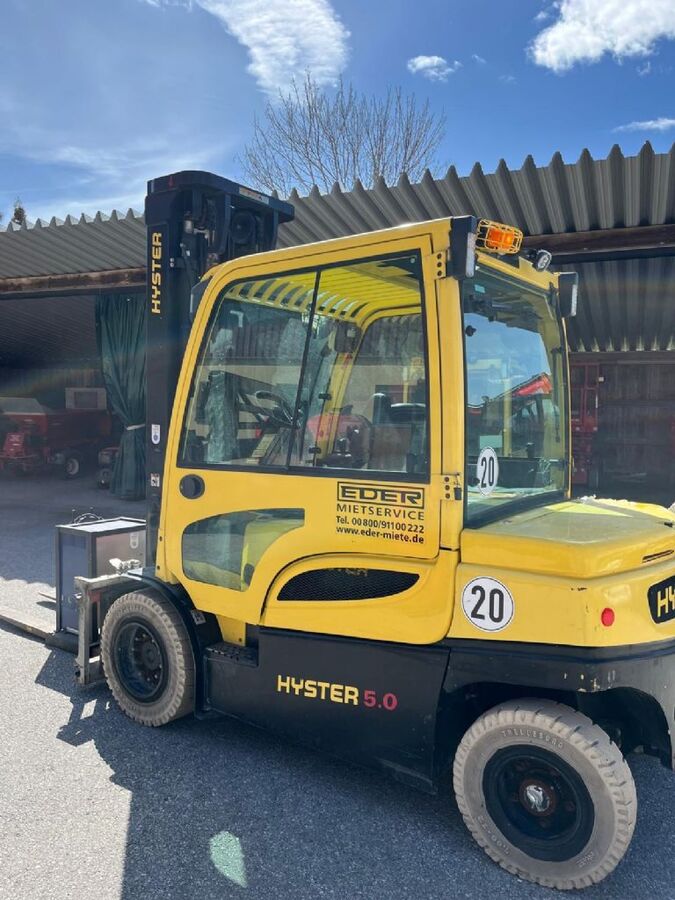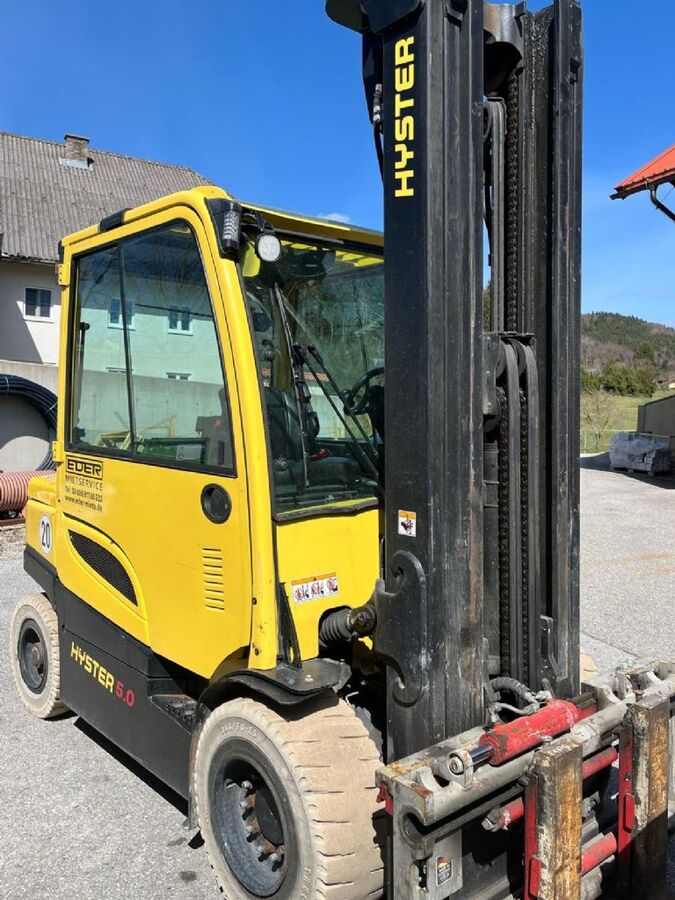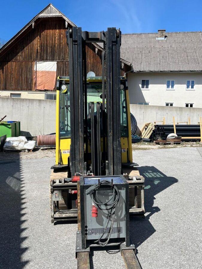 Bauart: Frontstapler / Elektro 4 Rad-Stapler, Tragkraft: 5000kg, Hubhöhe: 6185mm, Bauhöhe: 2870mm, Freihub: 1629mm, Gabellänge: 2000mm, Batterie: 80V 930Ah , Bereifung vorne: Non Marking , Bereifung hinten: Non Marking , Beschreibung: Vollkabine, Heizung, StVZO Beleuchtung, Arbeitsscheinwerfer, Rückfahralarm, Rundumleuchte, Durwen Zinkenverstellung, Seitenschieber, nicht kreidende Räder, Batterie 80V 930Ah, Aquamatik, Ladegerät 80/140 (Achtung: reduzierte Resttragkraft wegen Zinkenverstellgerät) Zustand Gerät KAT 2: Alle wesentlichen Fahrzeugkomponenten sind funktionstüchtig