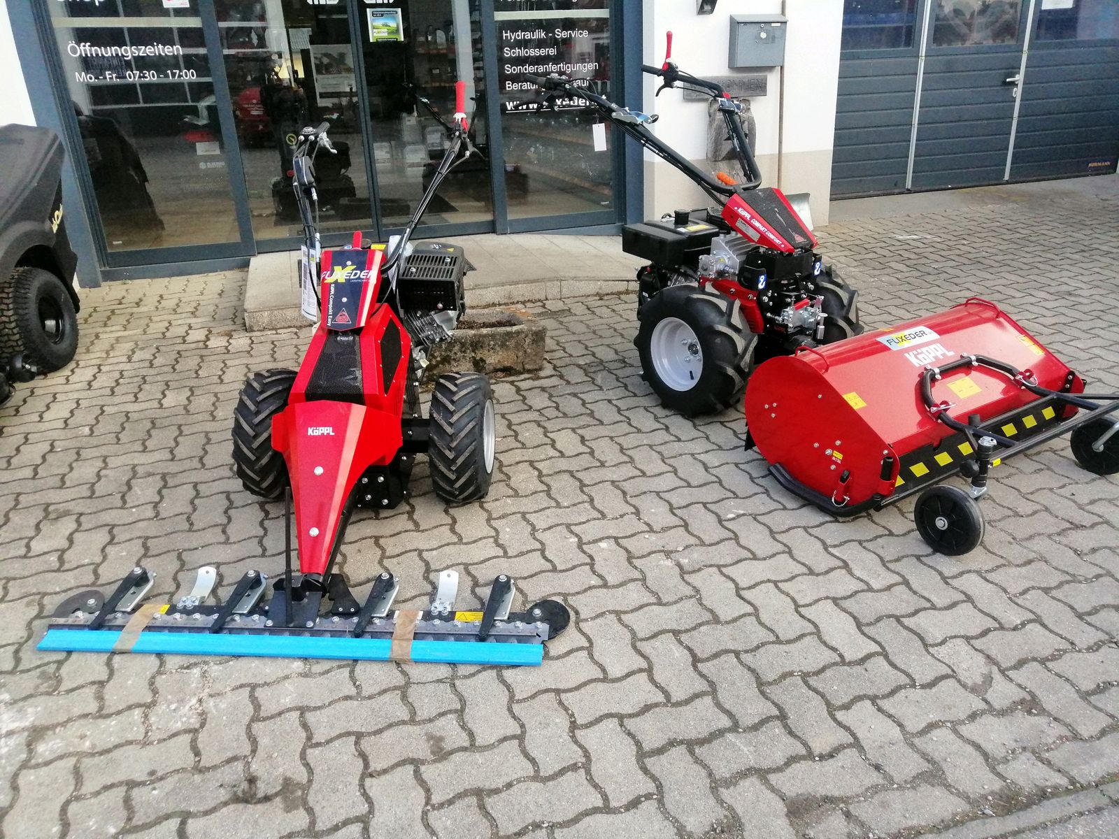 Köppl CC14 COMPAKT COMFORT Motormäher mit stufenlosen hydraulischen Fahrantrieb (Vorwärts 0 - 8 km/h; Rückwärts 0 - 4 km/h), Geschwindigkeitsregelung über Drehgriff, Standradblockierung,Autom Diff sperre Lenkung: Leicht bedienbare Turnaround-Aktivlenkung (Zero turn), Betriebsstundenzähler, Geräte-Schnellwechselflansch, Motoransaugschutzgitter, Werkzeugbox, Lasthaken mit 4-Takt Benzinmotor 10,2 kW (14 PS) mit Kraftstoffförderpumpe, Easy Drive - elektrische Geschwindigkeitsverstellung -+ Schwenkholm, Motorgruppe (14 PS) EX40 Hangtauglich - mit Schleglmulcher MTRF 100CL mit Aufklappbaren Führungsräder Prompt verfügbar Optional Mit Vielen Zusatzgeräte lieferbar ( siehe Auszug von Symbolfotos)+ alle Mähbalken