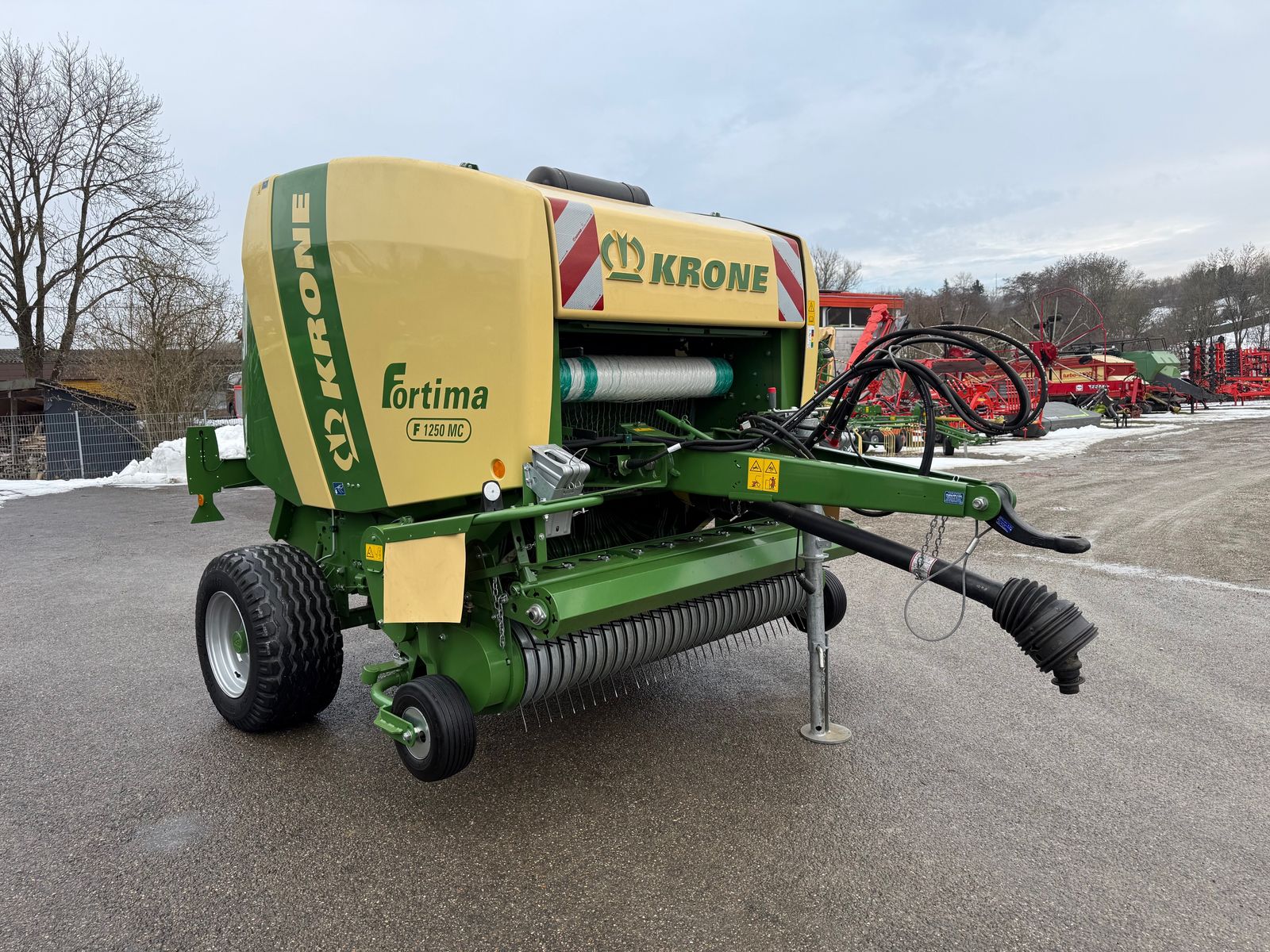 Rundballenpresse Krone Fortima 1250 MC Baujahr 2019 Ballenzahl 1508 Rundballenpresse mit konstanter Ballenkammer und Schneidwerk Länge 4.200 mm, Breite 2.570 mm, Höhe 2.490 mm Spur 2.150 mm Ballen Ø 1.250 mm Zapfwellendrehzahl 540 U/min Erforderliche Hydraulikanschlüsse: 2 x EW Leistungsbedarf ab 36 kW (50 PS) Grundausrüstung: Pick-up: - Rollenniederhalter - Ungesteuerte Pick-up EasyFlow (2.050 mm Aufnahmebreite nach DIN 11220) - Fünf Zinkenreihen, 55 mm Zinkenabstand - Werkzeuglose Höhenverstellung Rotor: - Schneid- und Förderrotor mit 17 Messern (0790) - Messerblocksicherung zum Schutz gegen Fremdkörper - V-förmige Zinkenanordnung für eine kantige Ballenform Presskammer: - Stabkettenelevator mit automatischer Spannvorrichtung - Geringe Antriebsleistung durch einfachen Aufbau und Leichtzügigkeit - Verzahnungseffekt führt zu höchster Drehsicherheit des Ballens auch bei kurzem/nassen Futter - Pressdruckanzeige inkl. links/rechts-Fahrtrichtungsanzeige für gleichmäßige Ballen Bindung: Automatischer Bindestart Weitere Ausstattung: Gelenkwelle, 1 3/8'', Z=6, Überlastkupplung Zusatzausrüstung: - Bereifung 15.0/55-17 - Zentrale Kettenschmierung - Komfort Bordelektronik 1.0 ISOBUS-fähig - Bedienterminal BETA-ll - Einzelachse mit Druckluftbremse Angebotspreis 29.750,00€ keine MwSt. ausweisbar