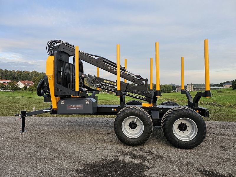 Kronos Kargo 121 mit zwei Radnarbenmotoren. Drucksteuerung des Antrieb über drei Stufen Schalter oder Geschwindigkeitsgeregelt. Eigenölversorgung mit einer LS Pumpe, 180 l/min bei ZW Drehzahl 1000U/min inkl. 10KW Ölkühler, Werkzeugkasten versperrbar (6/8mm Hardox), 4 Rad Druckluftbremse, Feststellbremse, K80 Zugmaul schraubbar, Kennzeichenbeleuchtung im Hecklichtbalken mit LED Leuchten. Kronos Gripto 709 mit 8,5m Reichweite, Parker Hydraulikblock mit regenerative Spulen und Kronos X-Crane Steuerung mit Minijoystick und Touchdisplay, GV6 Flanschrodator mit Y-Gehänge und Pendelbremse, HSP Gripen 024 Holzgreifer, elektronische Endlagendämpfung am Ausschub,..... Preis auf Anfrage