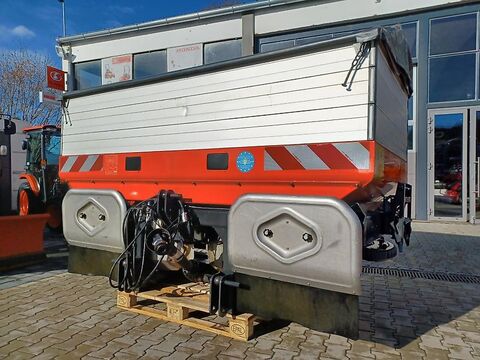Kubota DSX-W 1500 Geospread Ersteinsatz 2019 / Baujahr 2017 1500 Liter Grundbehältervolumen 3x Aufsatz a 650 Liter = 3450 Liter Gesamtvolumen mit Abdeckplane Wiegesystem mit 4 Wiegezellen + Referenzsensor ISOBUS-Steuerung max. 34 Teilbreiten über SectionControl geschaltet 8 Streuschaufeln pro Teller Streubreite von 10-45 Meter Grenzstreuplatte mittig, für Grenzstreuen von aussen nach innen Grenzstreueinrichtung TrimFlow link und rechts Schmutzfänger Aufstiegsleiter Beleuchtungsanlage