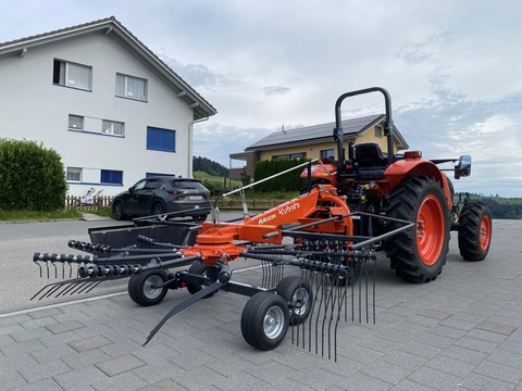 Kubota Kreiselschwader zeichnen sich durch hohe Stabilität aus. So kann mit kleinen Schleppern auch in Bergregionen durch große Arbeitsbreiten schlagkräftig Qualitätsfutter erzeugt werden.Alle Kubota CompactLine Schwader verfügen über abgewinkelte Zinkenarme. Dies erhöht bei gleicher Arbeitsbreite die rechleistung erheblich und optimiert zugleich die Schwadform.Schwader ist Baugleich wie Vicon ANDEX 353Produktvorteile:- Zinkenarmsteuerung und -lagerung im Ölbad – lange Lebensdauer und geringster Verschleiß- Geringes Eigengewicht und günstiger Schwerpunkt- Tandemachse - Stützrad für perfekte Bodenanpassung - Stützrad Stufenlos einstellbar- Gekröpfte Zinkenarme für höhere Recharbeit- Oberlenkeraufnahme im Langloch i. V. m. Stützrad, Gewicht:420
