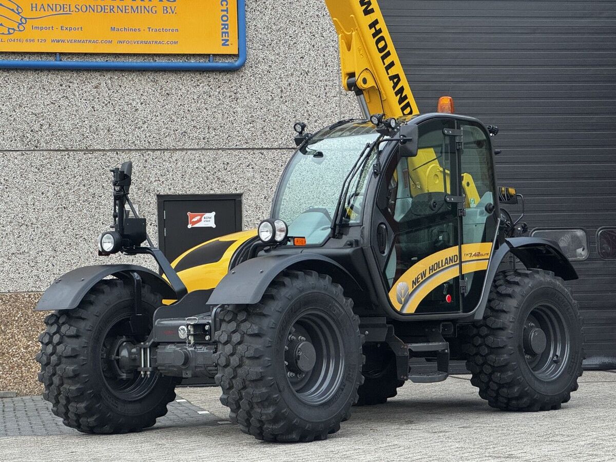 == More details (EN) == price: Price on request ex. VAT Cab Frontfenders New Holland TH7.42 ELITE 2023 6x3 (FULL) Auto-shift 40k 146hp 4200kg Max lift hight 7 mtr boom suspension multi functional joystick automatic steering alignment additional hydr service hydraulic bucket release hydraulic pressure release 2 line hydraulic trailerbrake rear dubble acting spoolvalve ABS trailer socket air suspensed seat with forks.Tyres: 460/70R24 BIBLOAD** LEASE POSSIBLE THROUGHOUT EUROPE!! ** We are open from Monday to Friday from 7.30 a.m. to 12 noon and from 1 p.m. to 5.30 p.m. If you would like to visit us outside office hours please contact us to make an appointmentDelivery to your location is no problem. We can also give assistance in organizing the relevant importation documents if necessary.We can also supply new and second hand accessories/parts such as tow bars tyres and wheel rims.We have made every effort to give you accurate and up-to-date information. Mistakes are however human and not always preventable. Model and specification mistakes can be made so we advise you to check these at all times