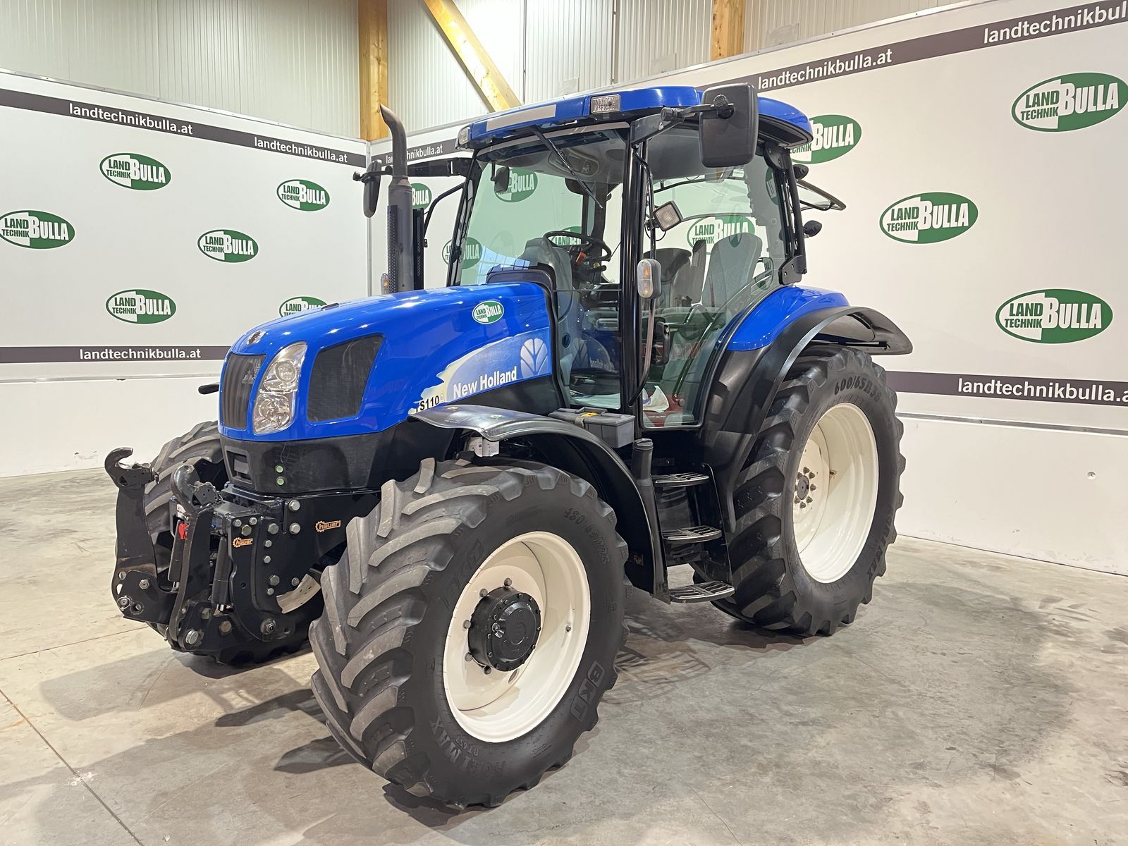 NEW HOLLAND TS 110 A + Bj 2008, 8200 h + 17/16 Gang Getriebe + 50 km/h Variante + Powershuttle, 4-fach Lastschaltgetriebe + Schaltautomatik + Bereifung hinten: 600/65 R 38 und vorne: 480/65 R 28 + Hauer Fronthubwerk + 4 x DW elektr. Steuergeräte + EHR + 1 + 2 Leiter Druckluftanlage + autom. Anhängevorrichtung + Hubwerk- Zapfwellenaußentaster + Klimaanlage + Motordrehzahlspeicher + Allrad, Sperren, Zapfwellenautomatik + hydr. Oberlenker + Kabinenfederung + Vorderachsfederung + Luftsitz