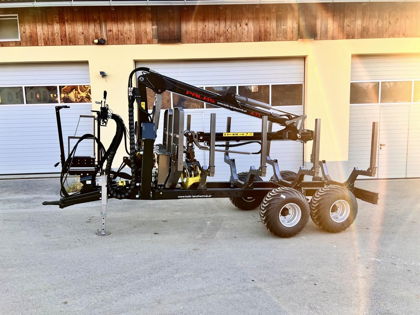 ++KOLB LANDTECHNIK++ ✅PALMS H8D mit Kran K4.71 ✅Eigenölversorgung mit Kolbenpumpe, Gelenkwelle und Stehpodest ✅Elektro ON/OFF Steuerung ✅7.1m Reichweite ✅1.115kg Hubkraft auf 4m ✅Palms C1 Profigreifer mit 123cm Öffnungsweite (optinal C3 145cm) ✅4.5t Flanschrotator mit Pendelbremse und Schlauchschutz ✅neue Version mit verbesserten Pendelgelenk ✅extrem starkes 4-Zylinder Monoblock-Schwenkschwerk ✅Doppelte Pendelbremse ✅Flap-Down Abstützung mit geschützen innenliegenden Zylindern ✅10.000kg HzG ✅STRENX-Zentralrohrrahmen 2x160x80x8 ✅Ladeflächenquerschnitt 2.0m² ✅Bereifung 400/60-15.5" auf Forstfelge mit Ventilschutz ✅Hydraulikbremse 2-Rad ✅4 Rungenpaare ✅Rahmenauszug ✅LED Beleuchtung mit klappbarem Schutz ✅2 Zylinder Schwenkdeichsel mit automatischer Sicherung Bitte bei Besichtigung um Terminvereinbarung damit die Maschine sicher verfügbar und lagernd is
