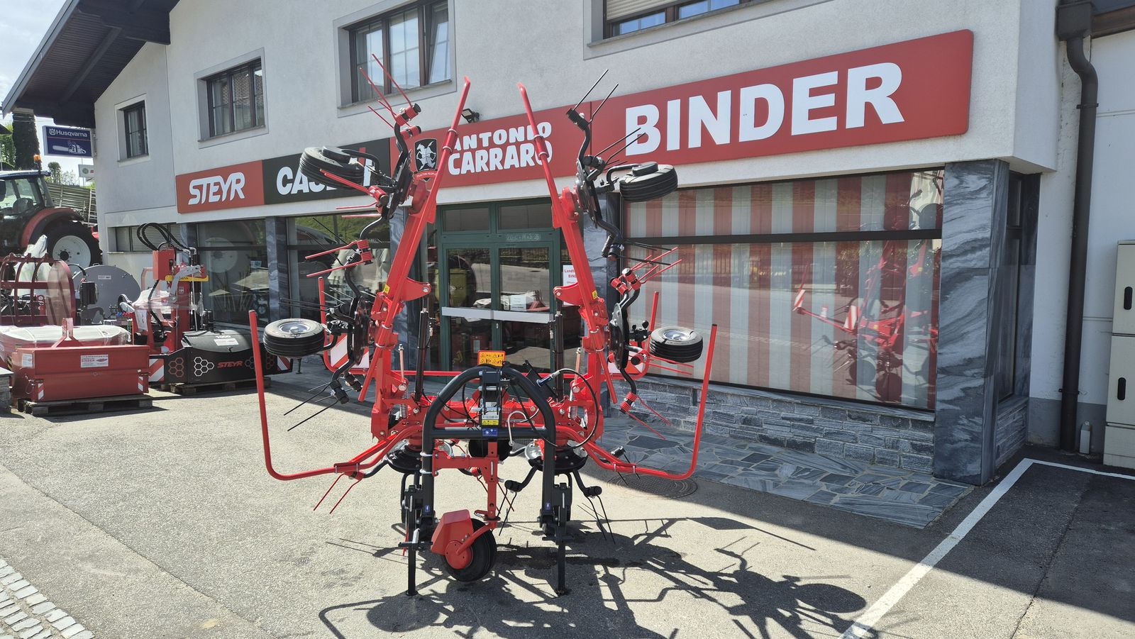 ✨ SIP 6-er Kreiselheuer - Lagermaschine ✔️ Modell: Spider 600-6 ALP inklusive Tastrad ✔️ in serienmäßiger Ausführung ✔️ lagernder Ausstellungskreiselheuer ✔️ inklusive Tastrad vorne ! ✔️ mit Ballonbereifung, ✔️ mit Schwenkbock Kat. 1 u .2, ✔️ mit Dämpfungsstreben, ✔️ mit Gelenkwelle mit Rutschkupplung, ✔️ mit hydr. Aushebung über ✔️ einfachwirkendes Steuergerät, ✔️ 6 Kreiselteller mit je 5 Zinkenarmen, ✔️ Arbeitsbreite 600 cm, ✔️ Transportbreite 285 cm, ✔️ Zinkenverlustsicherung, ✔️ Gewicht nur 570 kg ! ✔️ auch noch weitere SIP ✔️ Grünlandmaschinen wie ✔️ z.B. 4m Kreisler, Schwader, sowie ✔️ Front- und Heckmähwerke altpreisig ✔️ und auch prompt lieferbar lagernd ! ✔️ weitere SIP-Kreiselzettwender Produktmerkmale: ✔️ SCHWENKBOCK - verbessert die ✔️ Manövrierfähigkeit und den Nachlauf des ✔️ Traktors. ✔️ RUNDROHZINKENHALTER mit ✔️ Federzinken-Verlustsicherung. ✔️ Die unterschiedlichen Längen der ✔️ Federzinken verhindern Beschädigungen der ✔️ Grasnarbe und sorgen für sauberes Futter. ✔️ VERSTELLBARE RÄDER für das Streuen ✔️ entlang der Grenzen und verstellbare ✔️ Kreiselhöhe. ✔️ STREUWINKELEINSTELLUNG- kann je ✔️ nach Futtermenge im Bereich von 12 ° bis 18 ° ✔️ eingestellt werden. ✔️ HYDRAULISCHE KLAPPUNG DER ✔️ KREISEL - ermöglicht eine vereinfachte ✔️ Bedienung des Zettwenders vom Traktor aus.