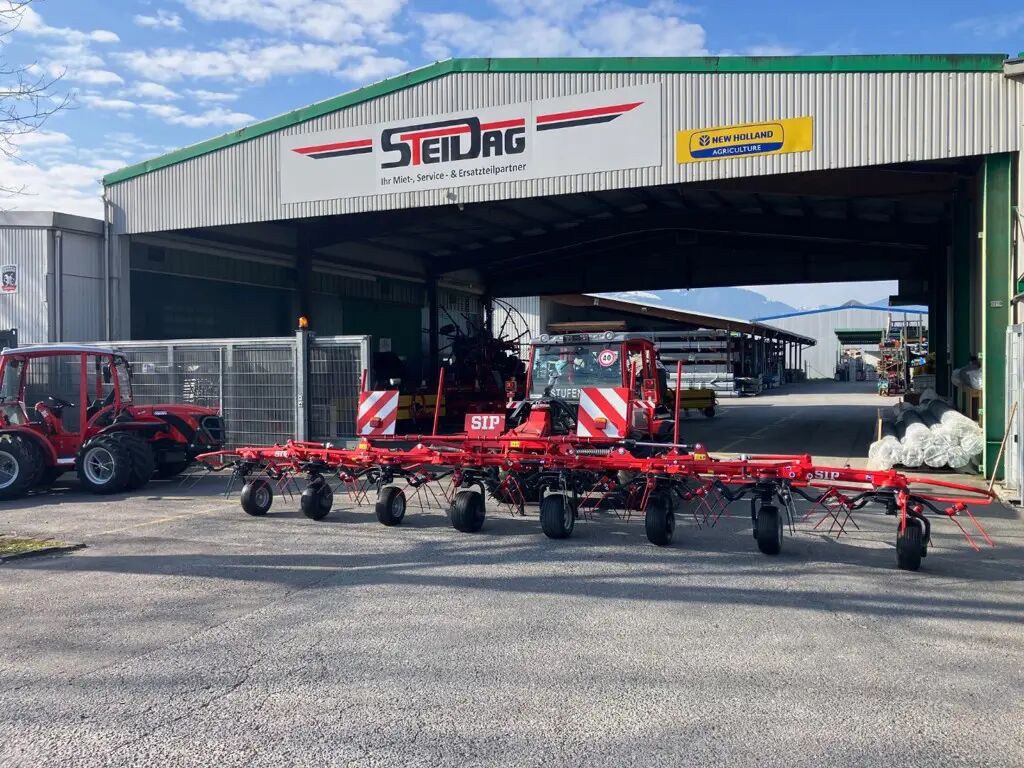 Kreiselheuer Sip Spider 815/8 mit 27% Ausstellungsrabatt auf Neumaschine! ( einmalig )Vorteile:- Antriebsstrang mit Kombination aus Doppelkreuzgelenk undFingerkupplung- hydraulische Grenzstreueinrichtung- schnwekbare Aufhängung mit Stabilisatoren- verstärkte Doppelkreisel- starker Super C Zinken- Zinkenverlustsicherungtechnische Angaben:Arbeitsbreite: 7.85mKreisel: 8 Stk.Zinkenarme pro Kreisel: 5 Stk.Kreiseldurchmesser: 1.30 mLeistung: 9.50 ha/hGewicht: ca. 1'080 kgMaschinenbreite: 8.17 mTransportbreite: 2.95 mTransporthöhe: 2.95 mTransportlänge: 1.90 mRäder Kreisel: 16x6.50-8Räder in de Mitte: 16x9.50-81.00 Preis Grundmaschine Sip Spider 815/8 1.00 Grenzsteu-Einrichtung (Radverstellung) inkl.1.00 Tastrad mit Oberlenkerwippe 1.00 Beleuchtung 1.00 Transportkostenanteil Werkslieferung 1.00 Endmontage Total Listenpreis 22'850.00 inkl. MWSTZwischenverkauf und Preisänderung vorbehalten!