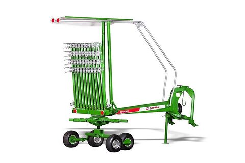Wolf-Landtechnik bietet den SIPMA ZK 450 WIR an. Das Rechen der Schwade ist ein wichtiges Element des ganzen Prozesses von Sammlung und Erhaltung von Grünfutter. Die Verwendung von Kreiselsammelrechen sichert eine hohe Qualität der Schwade, zerstört nicht die zarten Teile der Gräser, verringert nicht ihre Nährwerte und beeinträchtigt erheblich die Produktivität und Qualität der Arbeit von weiteren Maschinen in der Fertigungslinie - Rundballenpressen. Tech.Daten: SIPMA ZK 450 WIR .Arbeitsbreite:4500 mm .Breite des gerechten Walles:800-1600 mm .Anzhal der Rotoren:1 Stück .Durchmesser der Rotoren:3500 mm .Anzahl der Rechenausleger:11 Stück .Anzhal der Rechenfinger auf dem Ausleger: 4Stück .Radgröβe des Fahrsystems:15 x 6.00 – 6 6 PR .Maximale Geschwindigkeit:10 km/h .Leistungsbedarf:25,5 (35) KM(PS) Zubehör (inkl.): Teleskop-Gelenkwelle Tandemm-Fahrgestell Stützrad Maβe in der Arbeitslage: .Länge:4200mm .Breite:4500 mm .Höhe:1200 mm Maβe in der Transportposition .Länge:4200 mm .Breite:1620 mm .Höhe mit den herausgezogenen Harken:1280 mm .Höhe mit den eingelegten Harken:2200 mm .Gewicht:530kg Firma Wolf-Landtechnik ist ein autorisierter Händler und Generalimporteur der Firma Sipma S.A. Gern stellen wir Ihnen individuelle Angebote zusammen, sprechen Sie uns an und wir helfen schnellstmöglich weiter. Wolf-Landtechnik GmbH 02827 Görlitz Nickrischer Str. 15 Mobil: 01711001320 Wir sprechen deutsch, englisch und polnisch. Alle weiteren Sprachen können wir nur per mail beantworten! Gern probieren wir es dann zu übersetzen und helfen Ihnen weiter. Wir freuen uns auf Ihre Kontaktaufnahme! Mo.-Fr. 8.00-16.00 Uhr Samstags nach Terminvereinbarung