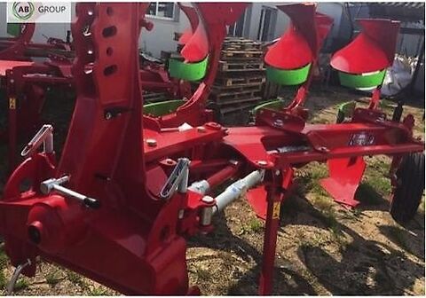 Federsicherung gegen die Steine, hydraulisch verstellbare Breite von der Fuerche: 35- 50cm, Hoehe des Rahmens 76cm, Abstand zwischen den Koerpern 100cm, Streifenscharen, Klingen und Bruesten vom Typ Kverneland 18", Linierungszylinder, im Standard Pflugscharen 18" mit Meisselspitz, Drehscheibe aus einem Guss 120mm]