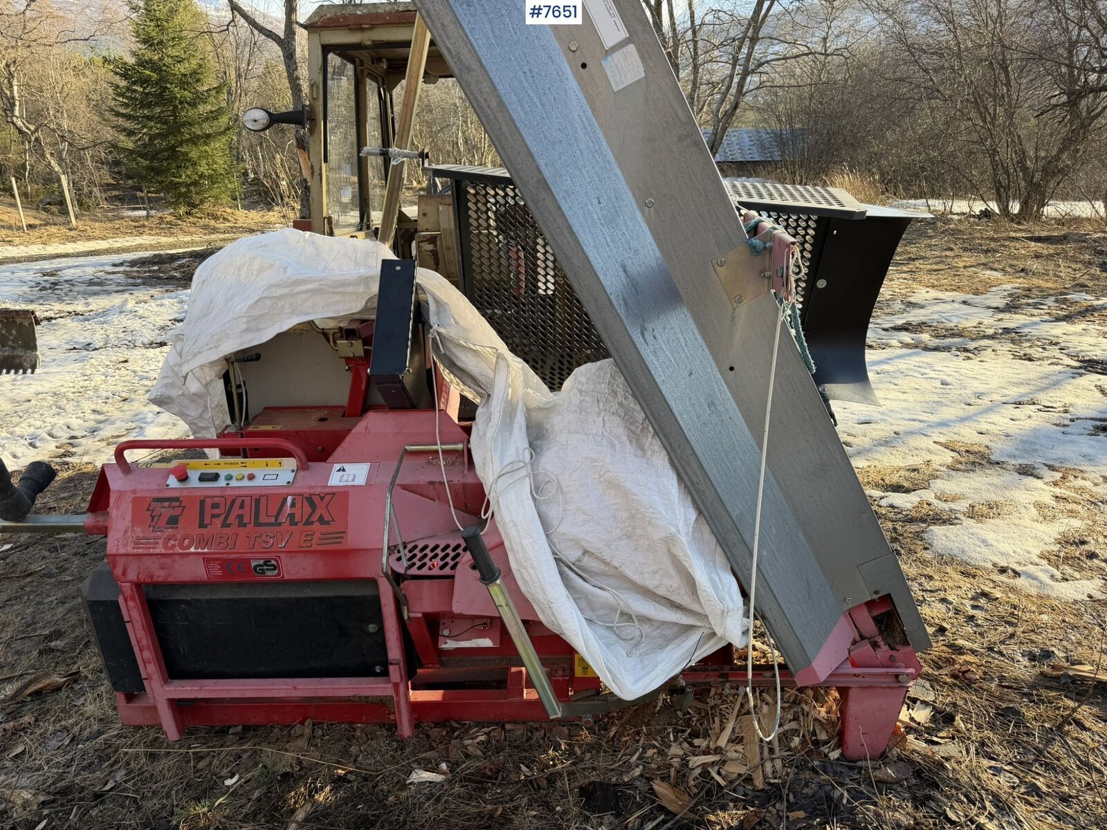 == Mer informasjon (NO) == mascus_category: snowblades Please provide reference number upon request: 7651 See en.landbrukssalg.no/7651 for more images Specifications Max log diameter: approx. 35 cm Saw blade: up to 700 mm PTO drive (tractor) Hydraulic splitting Conveyor belt for finished wood Weight approx. 430 kg Description Palax Combi TSV E wood chipper from Finnish Ter s Takomo This is a powerful wood processor that combines a crosscut saw and hydraulic splitter perfect for efficient production of firewood