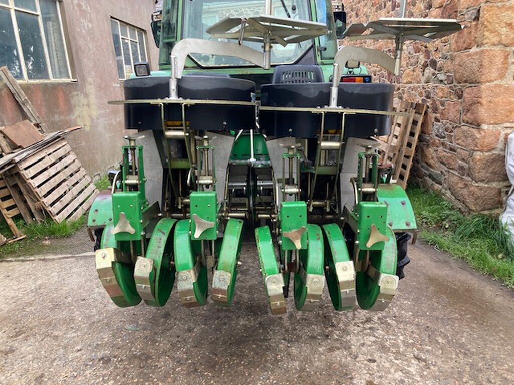 Der Duplex ist dafür ausgelegt, Setzlinge (Pflanzen aus Trays mit Erdballen) effizient mit relativ geringem Arbeitsaufwand auf dem Feld zu verpflanzen. In der Regel arbeitet die Maschine mit einem Bediener pro zwei Reihen, wodurch im Vergleich zur traditionellen Pflanzung weniger Arbeitskräfte benötigt werden.Hauptmerkmale Halbautomatische Pflanzmaschine (Bediener setzen die Pflanzen in rotierende Becher) Horizontaler rotierender Zuführer mit 24 Bechern1 Pflanzelement = 2 Reihen 2 Bediener 4 Reihen Bei diese maschineEinstellbarer Reihenabstand und Pflanzabstand Einstellbare PflanztiefePflanztypen Die Maschine ist für Setzlinge mit Erdballen (Traypflanzen) ausgelegt, in der Regel bis zu etwa 3,5 cm Ballendurchmesser.Weitere Informationen oder eine vollständige Angebot? Fragen Sie das einfach und schnell an auf unsere Duijndam Machines Website! Sie können uns auch anrufen.Alle zuverlässigen Maschinen finden Sie auf unserer Website.Seit 40 Jahren zuverlässiger Händler von gebrauchten Landwirtschafts- und GartenbaumaschinenDie Maschinen werden vor Auslieferung geprüftErfahrenes TeamWir können Ihnen helfen, die Maschine zu Ihrem Unternehmen zu TransportierenDuijndam MachinesDer Spezialist in Gebrauchtmaschinen für Landwirtschaft und Gartenbau