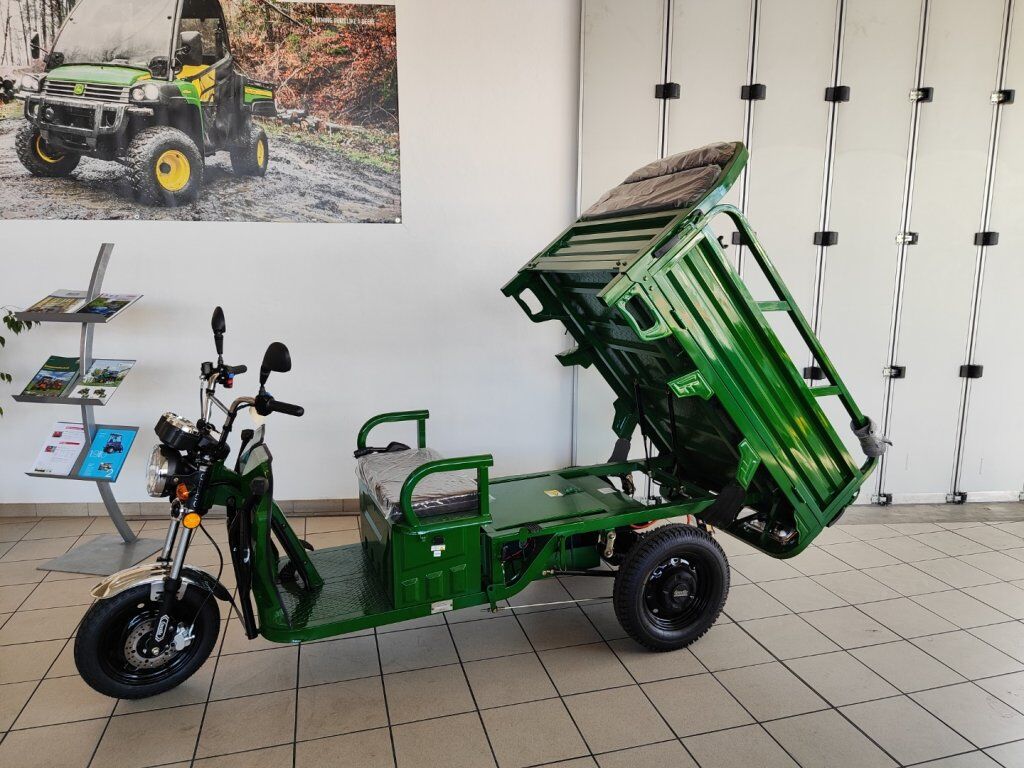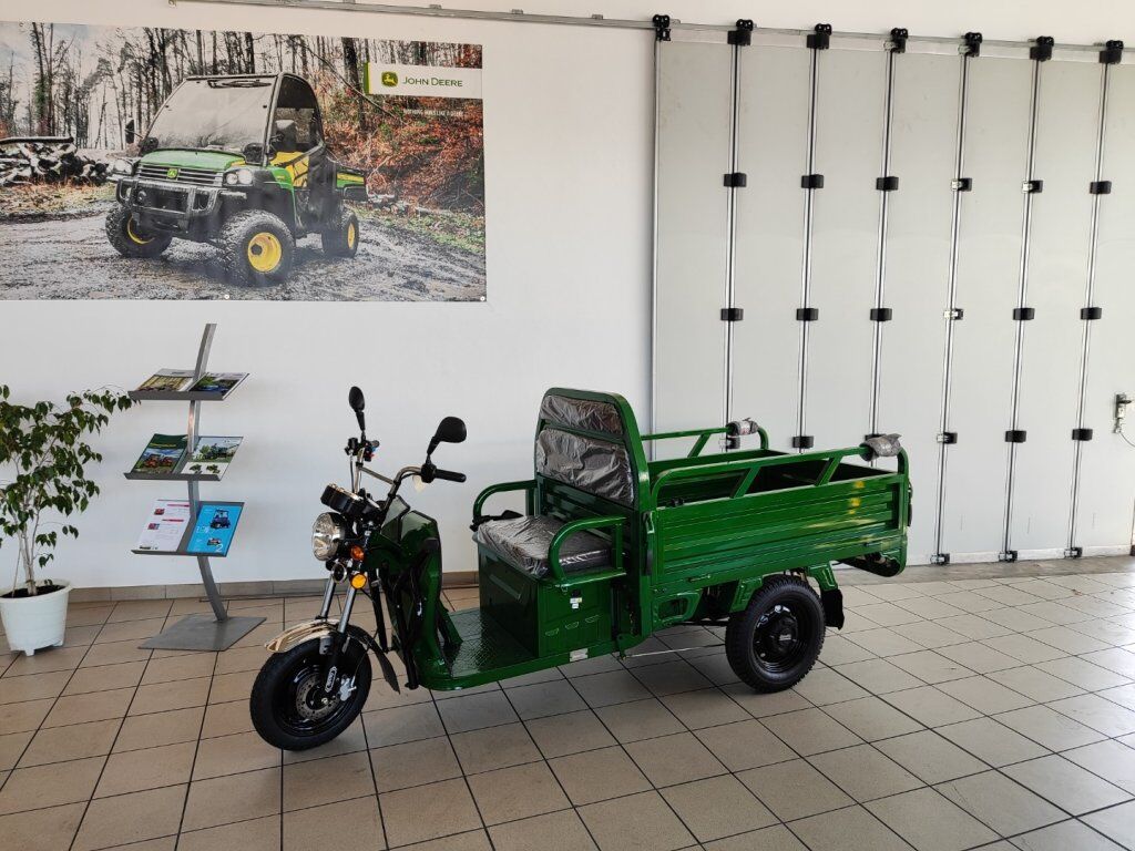 STEIGFÄHIGKEIT: ca 20% REICHWEITE: bis zu 50 km. ABMESSUNG L/B/H: 2970/1000/1350 mm. MOTORLEISTUNG: 250W / 72V (elektronisch begrenzt) BATTERIE: AGM 45 Ah / 72V. ZULADUNG: Bis zu 280 kg. GESCHWINDIGKEIT: bis zu 25 km/h.