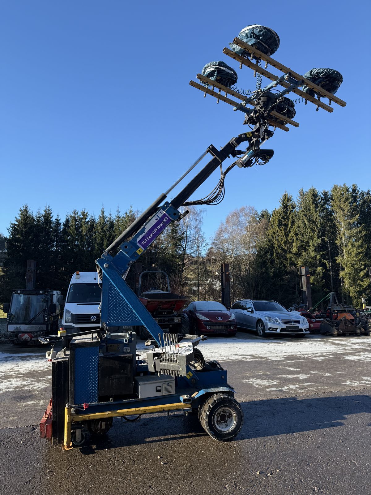 Smartlift SL 900, Vakuum Sauger inkl. Kran auf Fahrwerk, Smartlift, Selbstfahrtend, Batteriebetrieben ( Ladegerät fest verbaut ), 220 V Betrieb, Baujahr 2011, Sauger verstellbar in Breite / Höhe, Kran hydraulische Funktion, Heben / Senken, Neigung, Der Sauger lässt sich in alle Richtungen drehen und neigen in sämtlichen Achsen, sowie Seitenverschub etc... Hubkraft 900 kg, mit den Gewicht kann er auch fahren. Preis: € 6.000,- inkl. Mwst.