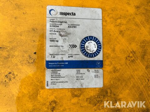 Övriga mått: Pelare höjd 4,9m Arm längd 3,1m