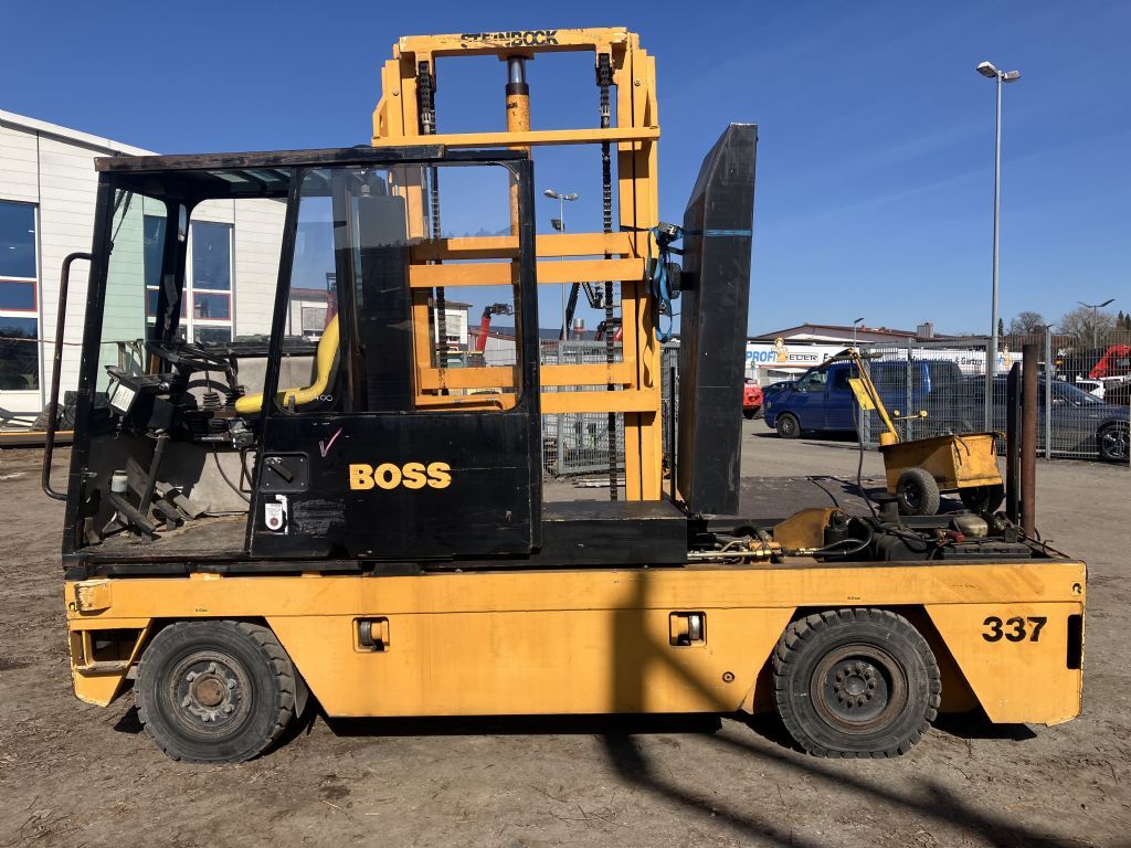 Bauart: Seitenstapler / Seitenstapler, Tragkraft: 3000kg, Hubhöhe: 4500mm, Bauhöhe: 2550mm, Freihub: 80mm, Gabellänge: 1350mm, Bereifung vorne: Superelastik , Bereifung hinten: Superelastik , Beschreibung: Kabine, Beleuchtung, Plattformbreite 1400 mm, Plattformhöhe 900 mm ""Bastelfahrzeug"" - reparaturbedürftig, Verkauf im IST-Zustand Zustand Gerät KAT 3: Gerät bedingt fahrbereit