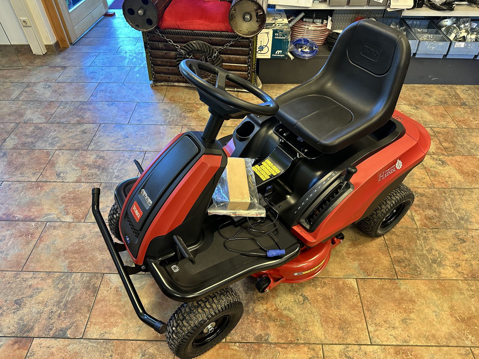 AKTIONSPREIS ABVERKAUF Elektromäher für bis zu 6000m2 bei normalen Grasverhältnissen keine Übertreibung Absolut problemloses Fahrzeug auch für Hang verwendbar Mulchmähdeck oder Seitenauswurf rechts Mähdeck mit 2 Messern mit Elektroantrieb Höhenverstellung mechanisch Messerschaltung elektrisch mäht auch bei Retourfahrt Fahrantrieb elektrisch Getränkehalter Ladesteckdose Scheinwerfer vorne Feststellbremse mit Handbremshebel Fahrpedal mit Vorwahl Fahrtrichtung Bremse mit Pedal Anzeige Ladezustand Ladegerät Aus etwaigen Irrtümern oder falschen Angaben entstehen keine Ansprüche Zwischenverkauf vorbehalten