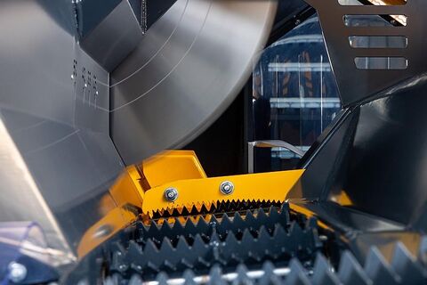 Umweltfreundlicher Sägespaltautomat/Sägespalter TITAN 40/20 premium mit einem WIDIA-Sägeblatt.