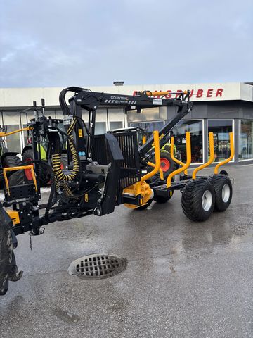 Rückeanhänger Counrty T70S mit Kran C670+Anhänger mit 7T Nutzlast+Tandemachse Bereifung 400/60/15, 5+Hydraulische 2-Radbremse+Pendelachse+4 Rungenpaare+