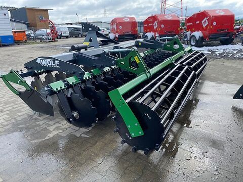 Wolf-Landtechnik bietet:Scheibeneggen 3 Meter in verschieden VersionenDirekt auf Lager!Standard Ausrüstung: zwei Reihen mit 560er und seitlich 510er Scheiben