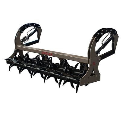 The rotary harrow is a rotating tillage implement that finely crumbles and levels the soil at the same time. It is often used for seedbed preparation.