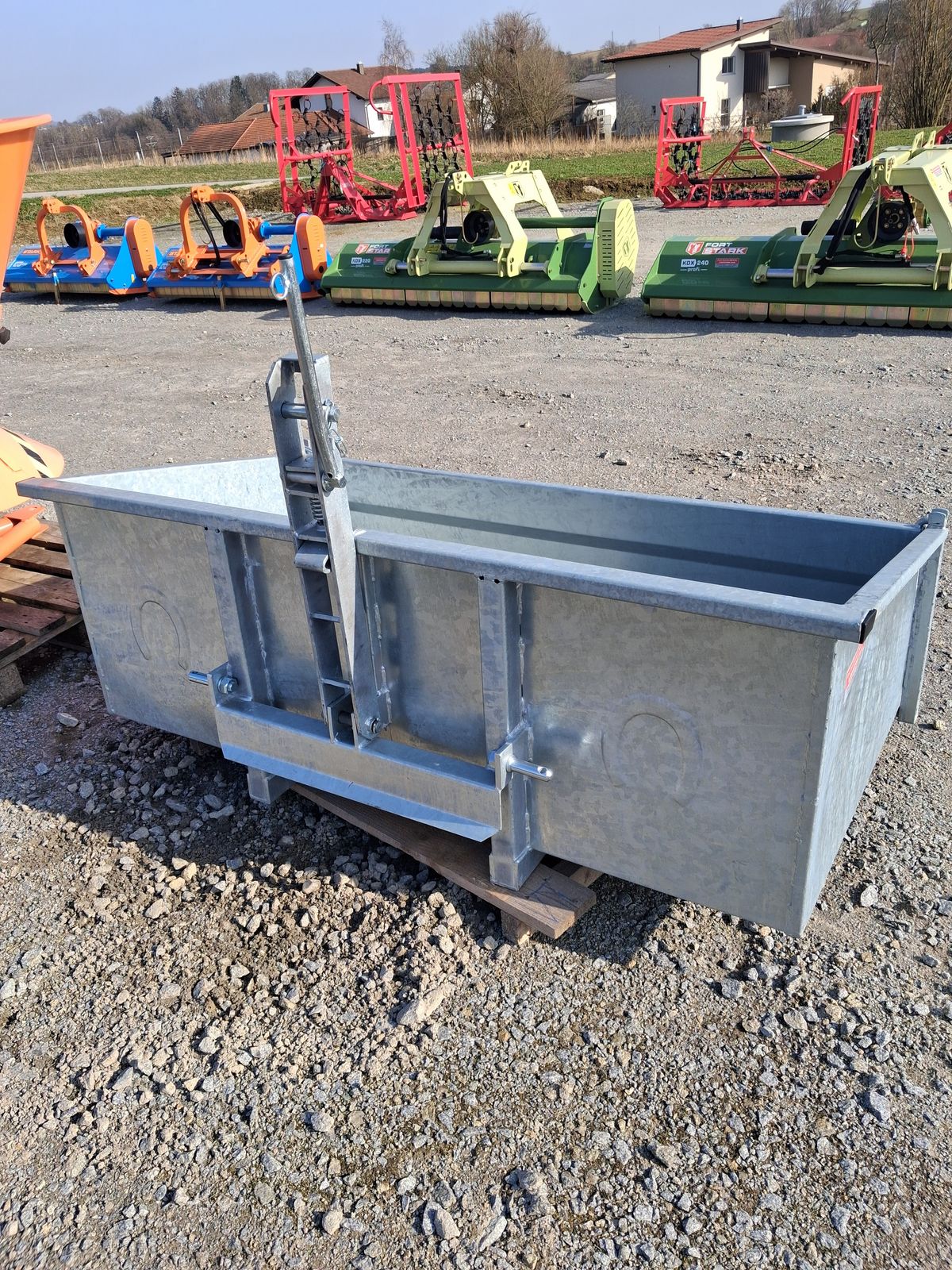 Stekro Kippmulde verzinkt ECO - mechanisch - 1600x580x850mm - Gewicht ca. 110kg - Volumen ca. 0, 66m³ Das Verkaufsteam der Firma Mühlbacher Maschinen zeigt
