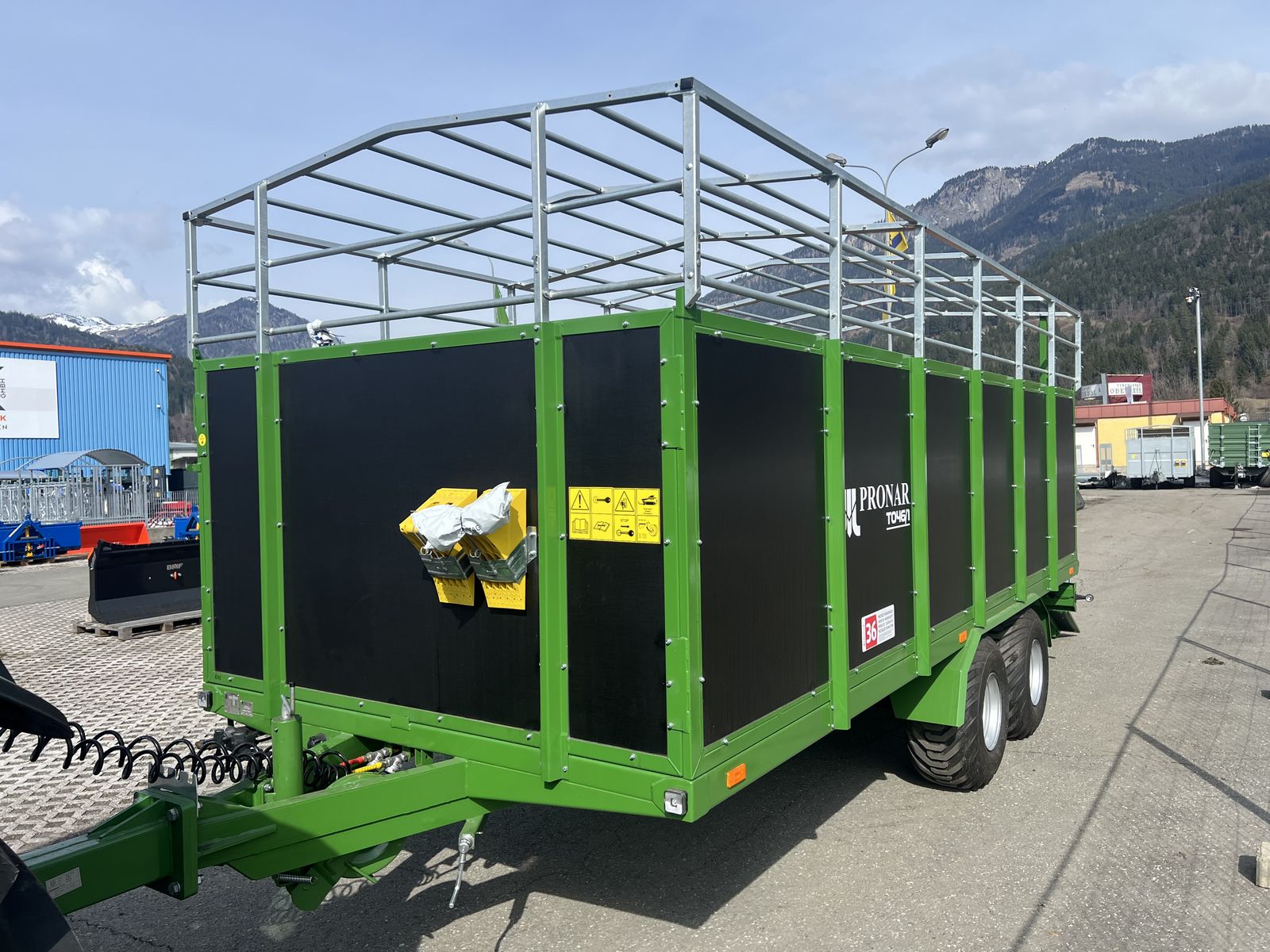 Pronar Viehanhänger T046/1 (Kurier10) mit folgender Ausstattung: * Aufbau Wände aus wasserdichtem Sperrholz 18 mm * Schau- bzw. Ausstiegstüre vorne rechts * Vieh