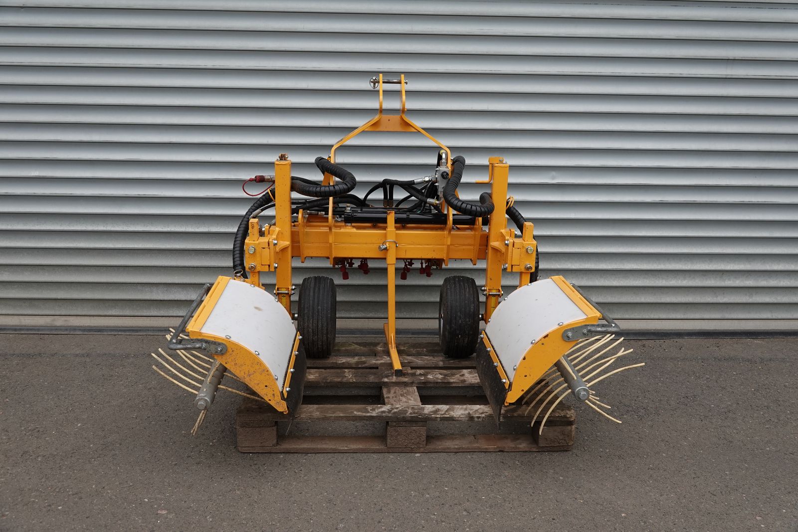 - zwei Vertikalwellenbürsten an Überzeilenrahmen- Anfahrsicherung beidseitig- Bestückt mit mehrlagigen genoppten Gummistreifen- Manuelle Höhenverstellung der B