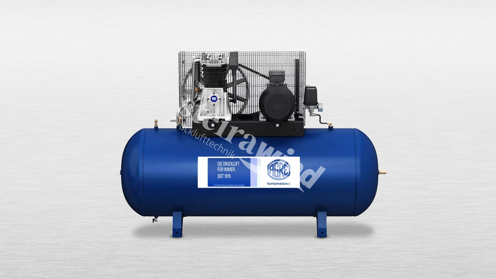 Ölgeschmierter Kolbenverdichter Kühlung: Luftgekühlte BauweiseAntrieb: RiemenantriebInklusive 270 Liter Behälter (lackiert)LeistungsdatenVolumenstrom