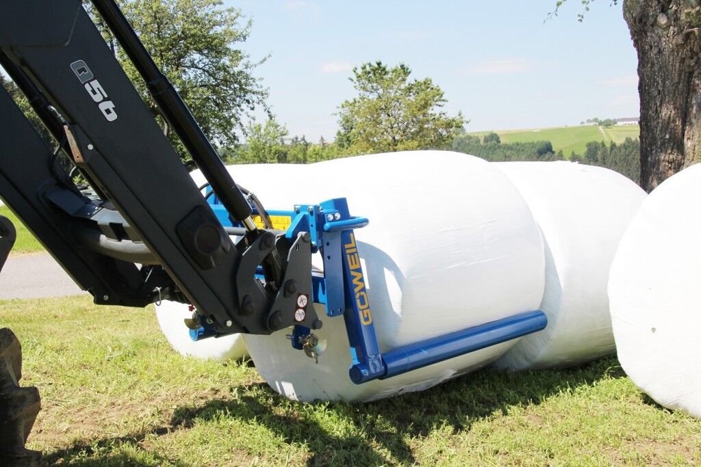Zum Transportieren oder Stapeln von gewickelten Rundballen.- Gabelrohre drehbar- Für Ballendurchmesser von 90-180 cm- Doppeltwirkender Hydraulikanschluss erforderlic