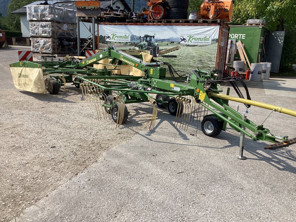 Krone Vierkreisel- Mittelschwader Arbeitsbreite: 9, 8 -12, 5 m, Schwadbreite: 1, 2-2, 2 m, Transportbreite: 2, 99 m, transporthöhe: 3, 99 m, die 2 vorderen Schwader mit 11