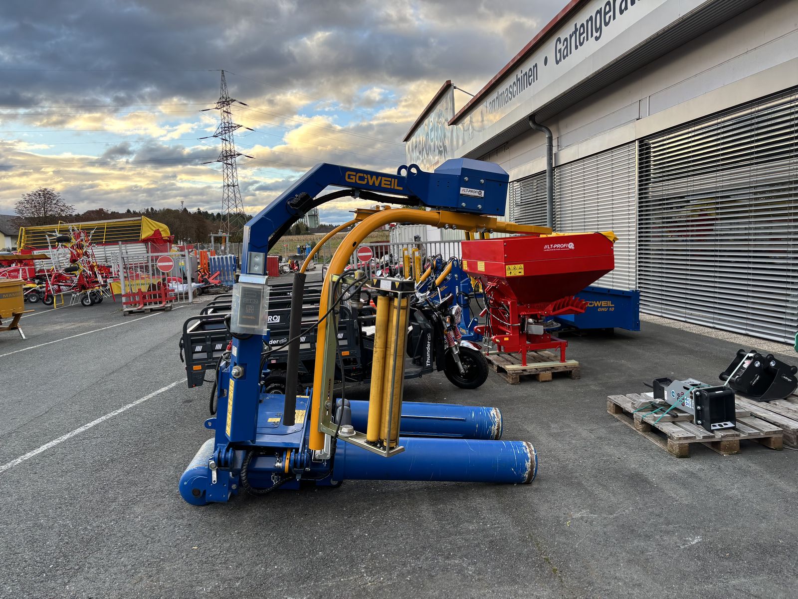 Rundballenwickelmaschine Göweil G1015== Lagermaschine Abverkauf ==EinfachwickelarmDreipunktanbau Kat. II und IIIHydraulisch schwenkbare Walzenarme zur Aufnah