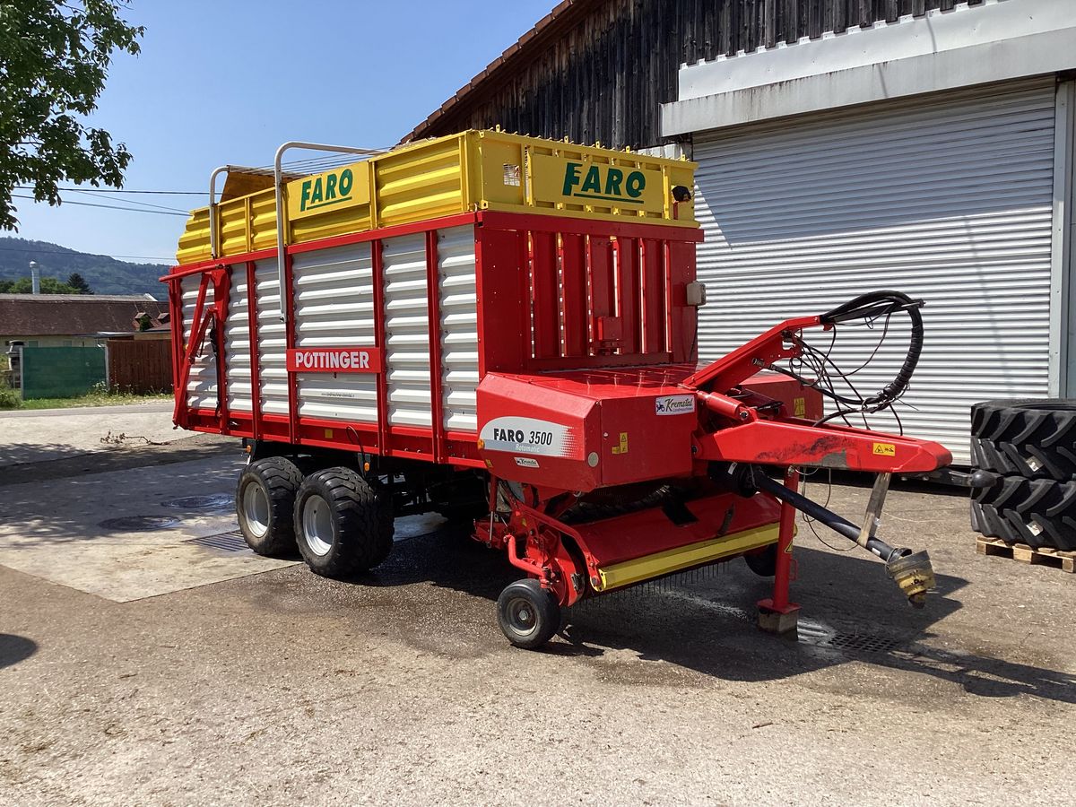 Pöttinger Faro 3500 Rotorladewagen mit Tandemachse, Weitwinklgelenkwelle, Hydraulische Anhängerbremse, 27 Messer 51mm Messerabstand, Elektrohydraulisch Vorwahlschalt