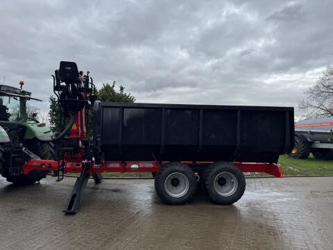Drehhebelsteuerung, FD-Stützen, massiv gebauter BMF-Forstanhänger 8T2 mit 720 Kran, 4 Rungenpaare, Rahmenverlängerung (800 mm), hydr. Bremse auf 1. Achse, bewegliche