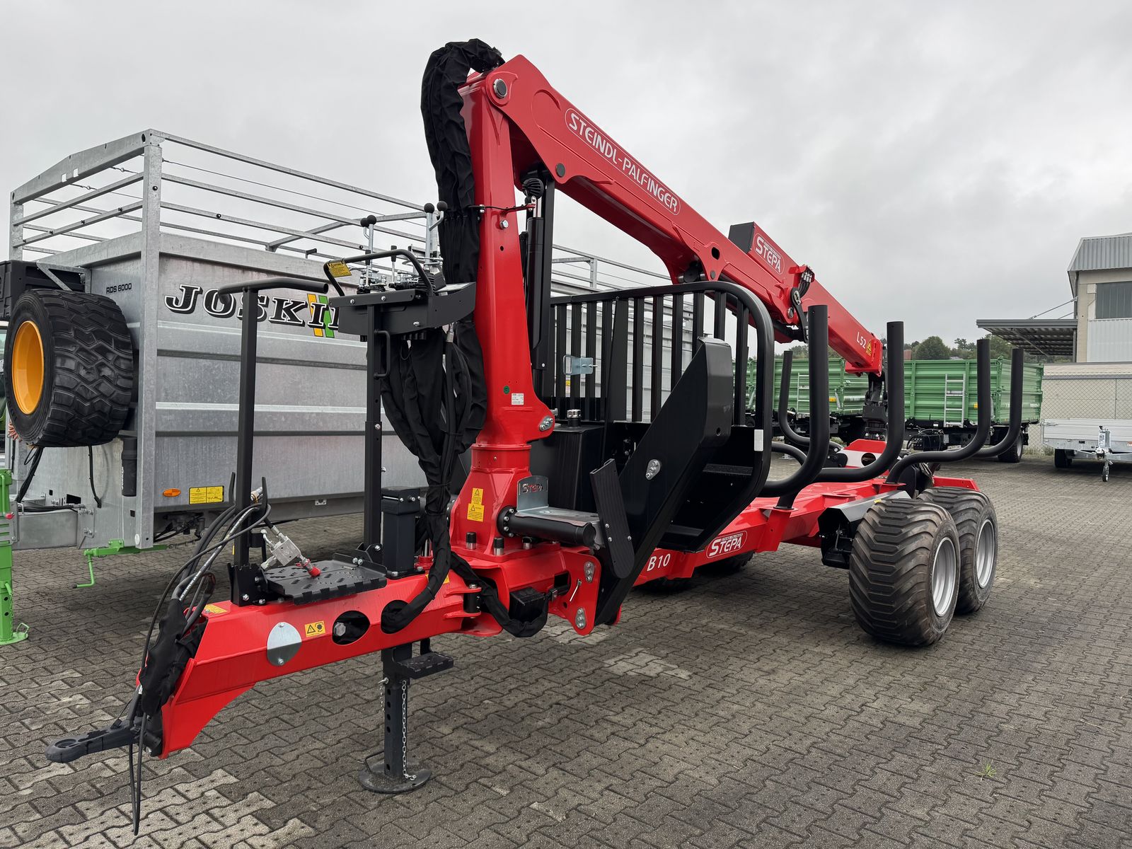 Forstanhänger B10 + Forstkran FL5284Zweikreishydraulik mit 2 x 4-fach Steuerblöcke mit 2KreuzdrehhebelHubzylinderschutzScheinwerferbausatz kompl. mit EIN-AUS