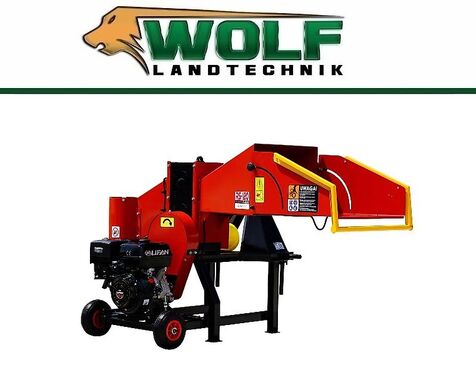 Wolf-Landtechnik GmbH bietet einen Holzhacker RPS-120 mit Fahrgestell (Anhängerkupplung inklusive) und Benzinmotor mit 6 Messer an.Dieses Gerät wird in verschieden