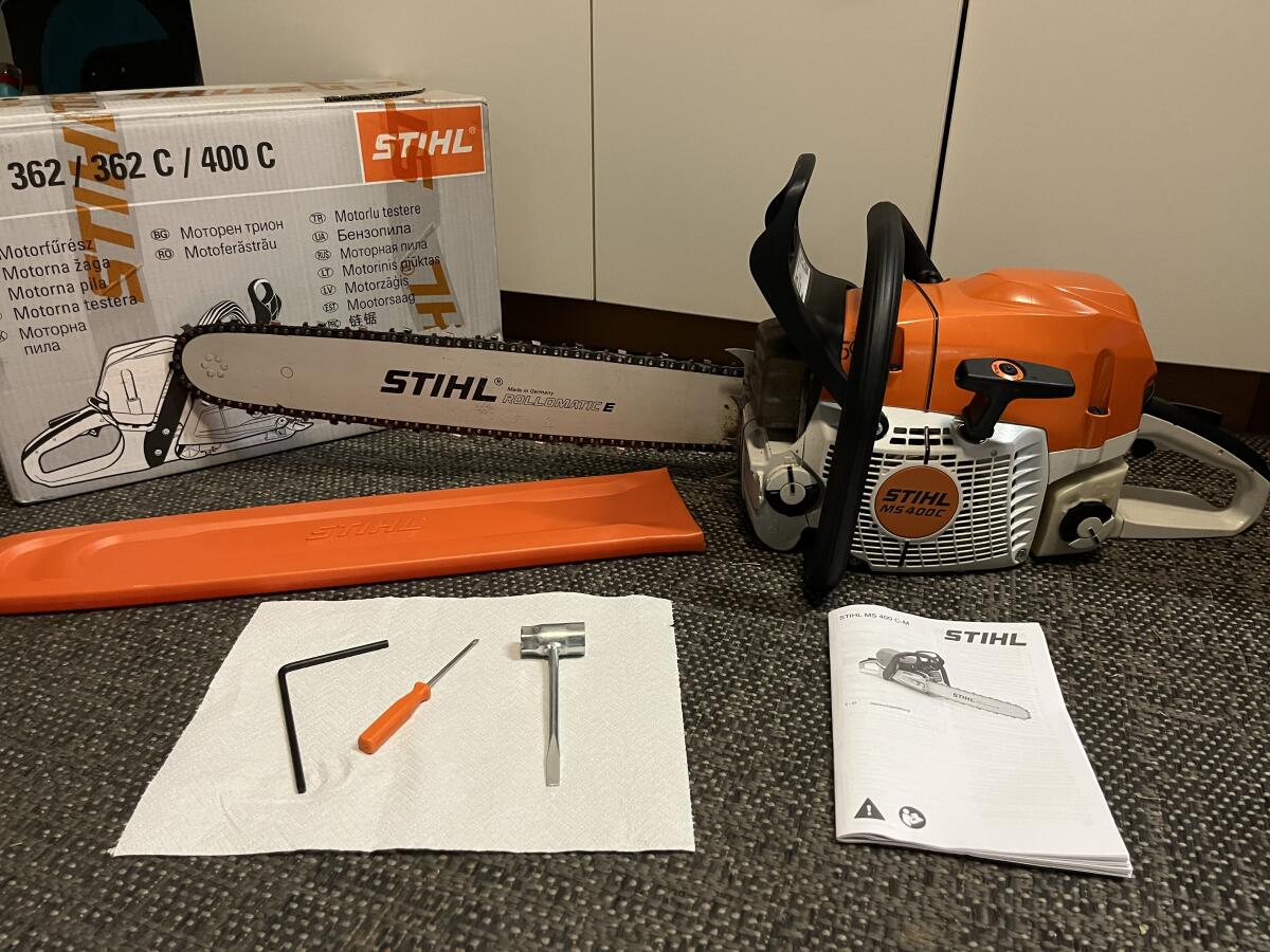 Verkaufe meine neuwertige Stihl MS 400 C. Motorsäge ist im besten Zustand, wurde nur 6 Mal verwendet und ist daher noch wie neu. Motorsäge mit 50er Schwert. Alle Ein