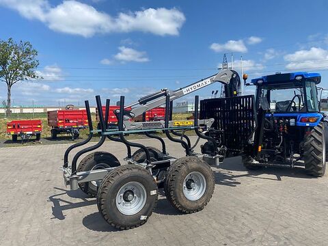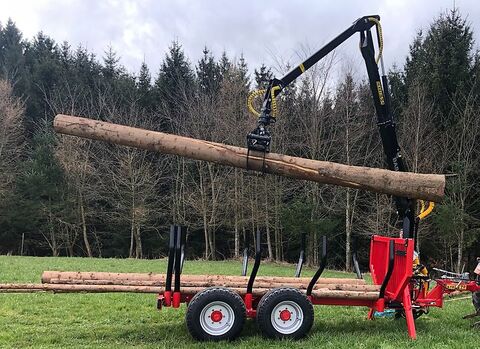 COUNTRY Rückeanhänger 50s-550Master, Neufahrzeug, Auflaufbremse, Straßenzulassung 25kmh, Gesamtgewicht 5, 6t; Teleskopkran 5, 5m, Passt gut an Schlepper ab 40- 60Ps
