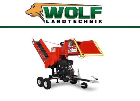 Wolf-Landtechnik GmbH bietet einen Holzhacker RPS-120 mit Fahrgestell (Anhängerkupplung inklusive) und Benzinmotor mit 6 Messer an.Dieses Gerät wird in verschieden