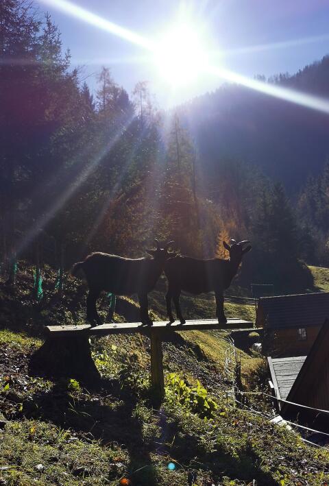 Verkaufe zwei Jungziegen vom Frühjahr 2025, Kreuzungen aus Gämsfarbigen Gebirgsziege mit Tauernschecke oder mit Strahlenziegenbock. Genetisch hornlos. Bei Interesse