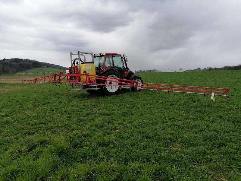 Im Top-Zustand mit 850 l Tank und ca. 100 l Reinwassertank und Handwaschbehälter, 15 m Breite, hydr. Hangausgleich und Höhenverstellung, mit Profi Lechner Düsen, inkl. Beleuchtung und Gelenkwelle.