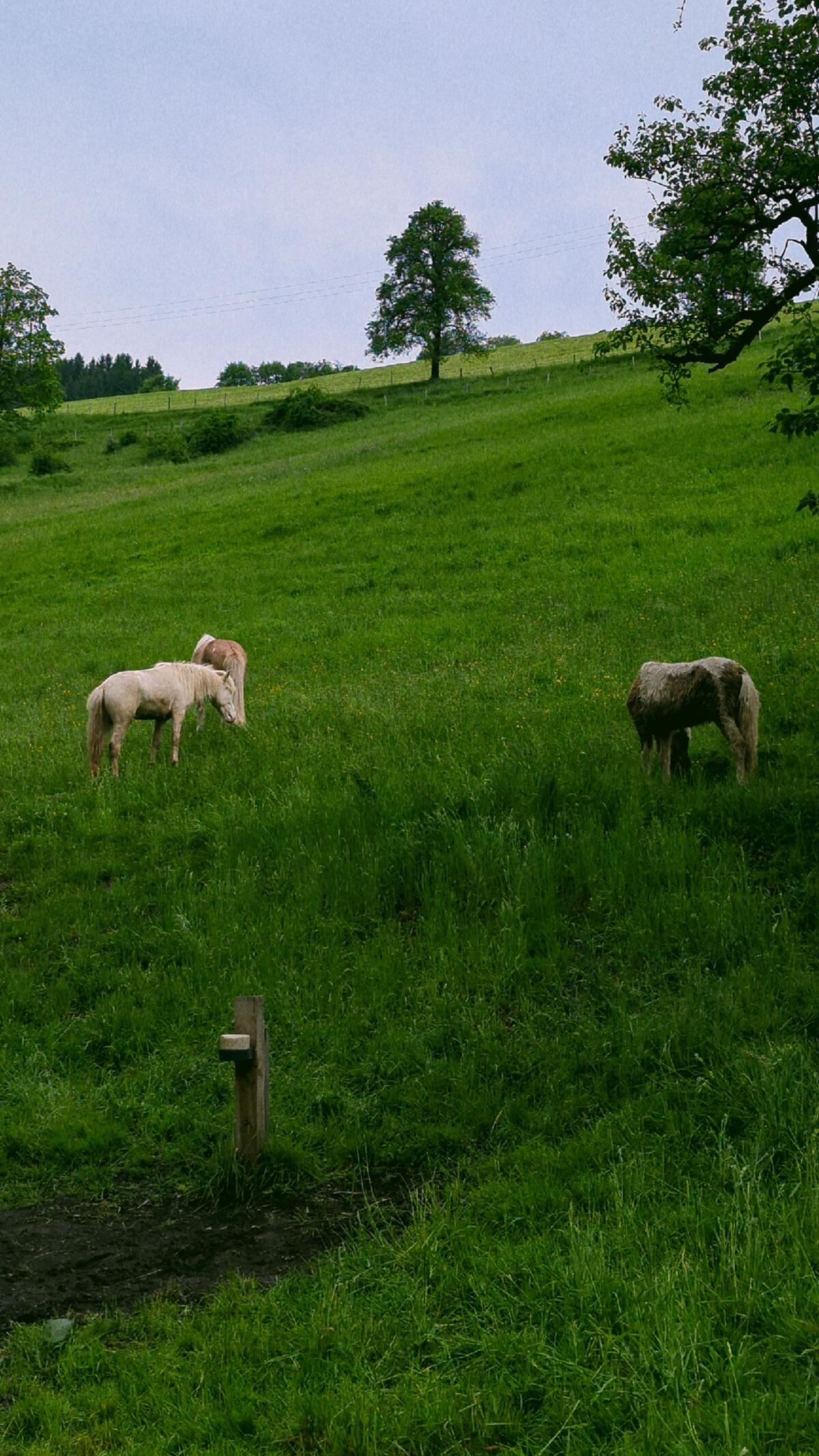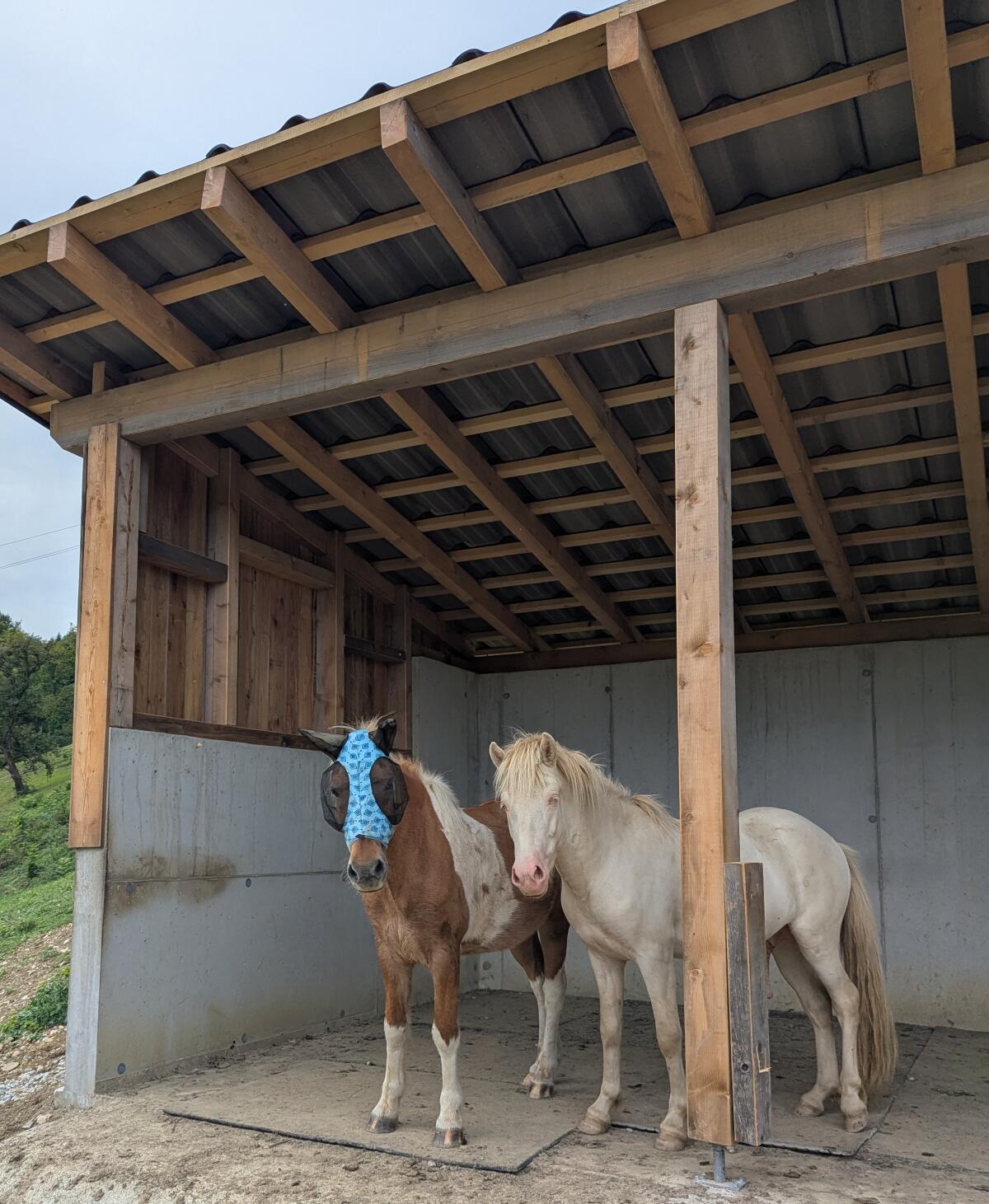 Heu aus eigener Produktion, Frühjahrsweide: Weidezelt, Leckstein, Bachzugang an drei Stellen, Sommer/-Herbstweide fester Unterstand 25 m² und Badewanne mit Selbsttränker, Winterweiden mit Zugang vom Hauptstall, tägliche Mineralfuttergabe, Herbst/Winter/Frühjahr: 24/7 Heu, Frühling/Sommer: ausreichend Weidefläche, harmonische Bestandsgruppe aus derzeit drei Islandpferden (1, 2 und 18 Jahre), Hauptstall (Fertigstellung im Sommer) für die Winterresidenz - Krankenbox, zwei Gruppenboxen (je ca. 25 m²) + befestigter Auslauf mit Waldzugang (ca. 360 m²), Einstreu: Späne oder Stroh, tägliche Kontrolle der Vierbeiner und Weiden.