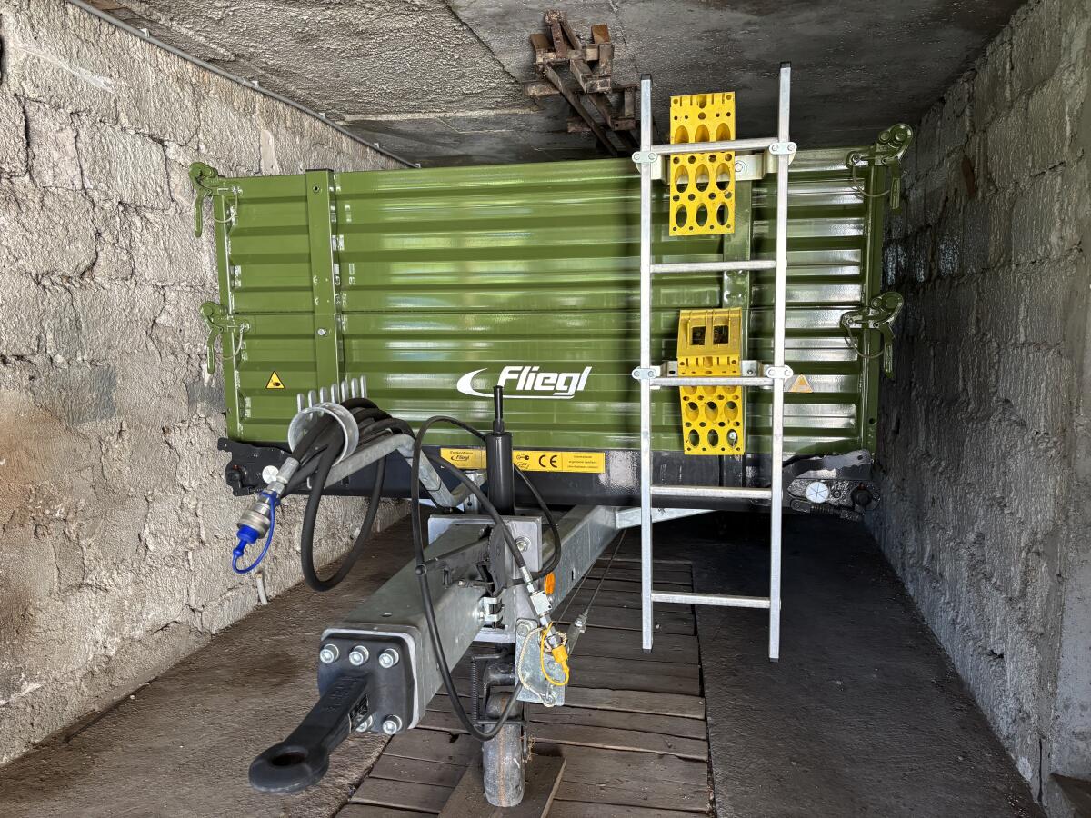 Dreiseitenkipper Fiegl, 5.500 kg, Seitenwandhöhe 80 cm, Ladefläche 3,5 m x 2 m, unbenutzt.