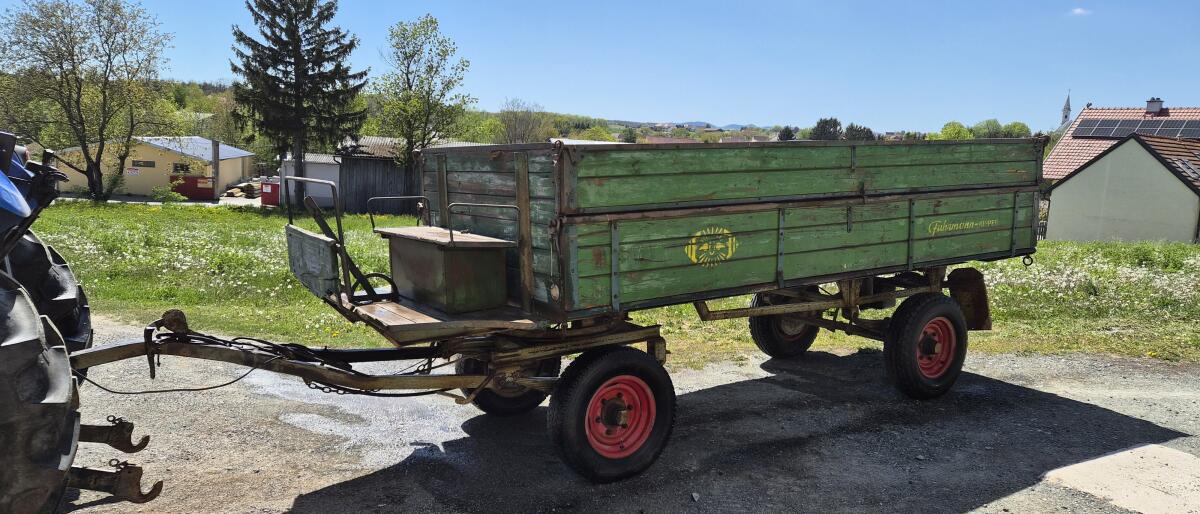 Bj. 1971, kippt über Traktorhydr., Metallplateau, Maße 3,9x1,82 m, Wandhöhe 0,8 m.