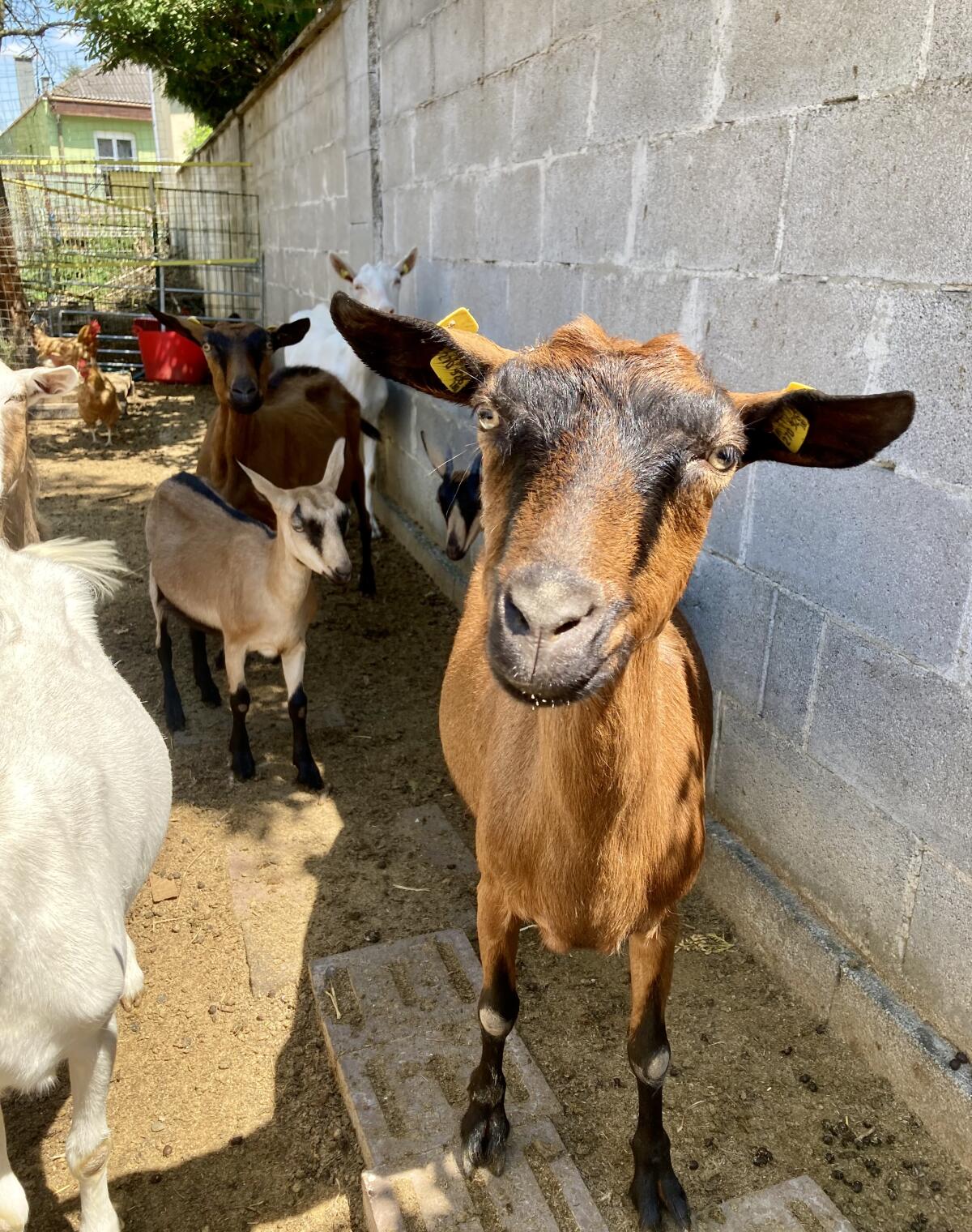 Gamsfarbige Gebirgsziege mit Tochter (Vater Saanenmix, geboren 03/24), die Mutter hat nicht die besten Klauen, aber keine Probleme. Beide nicht die größten, gedeckt von Steirer Scheckenbock. Preis pro Tier.
